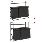 Laundry Basket with 3 Compartments and Shelves, Brown Oak