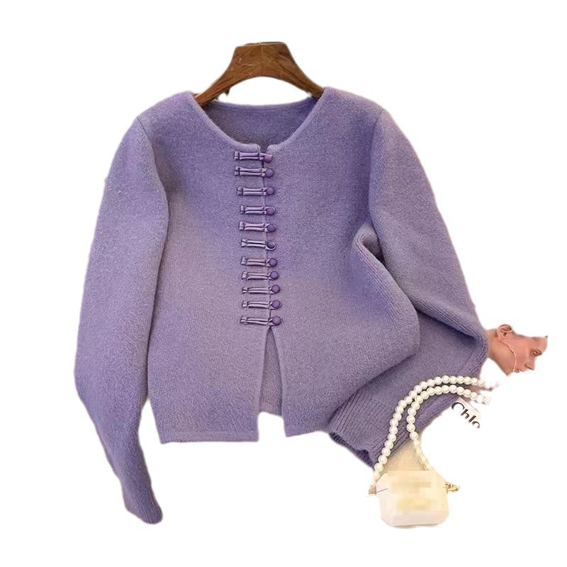 Elegant Chinese-style buttoned knitwear offering a comfortable, versatile fit with classic design for everyday wear.