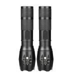 High-powered USB rechargeable LED flashlight with zoom function, ideal for camping, work, and outdoor activities.