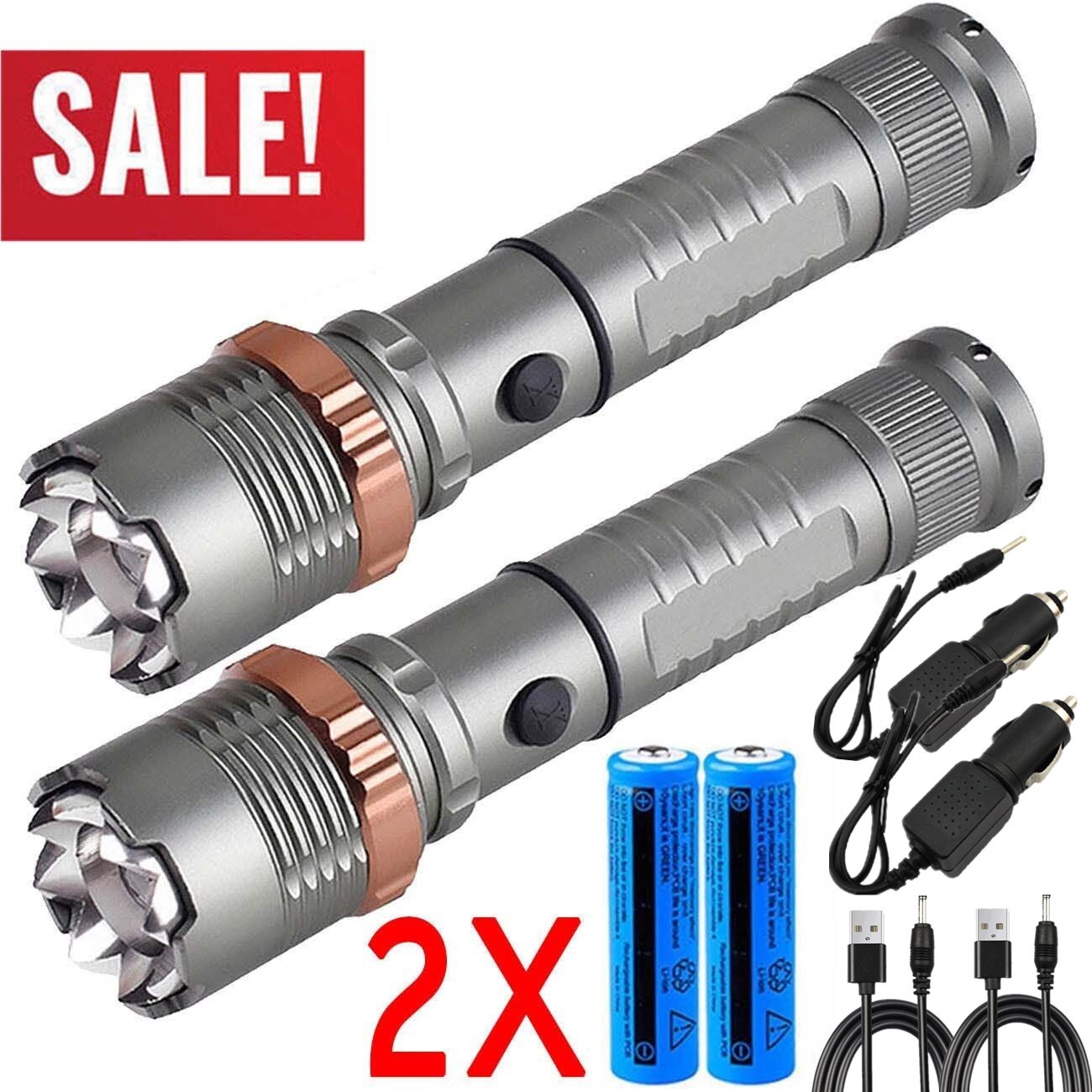 Durable rechargeable LED tactical flashlight with ultra-bright beam, emergency escape hammer, and versatile work light functionality.