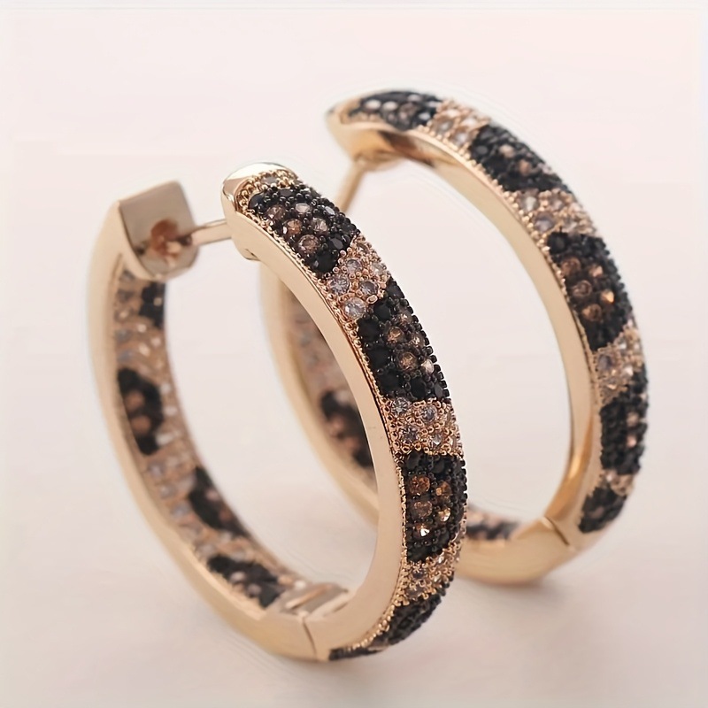 Elegant leopard print gold earrings featuring micro-inlaid zircon stones for a stylish and luxurious finish.