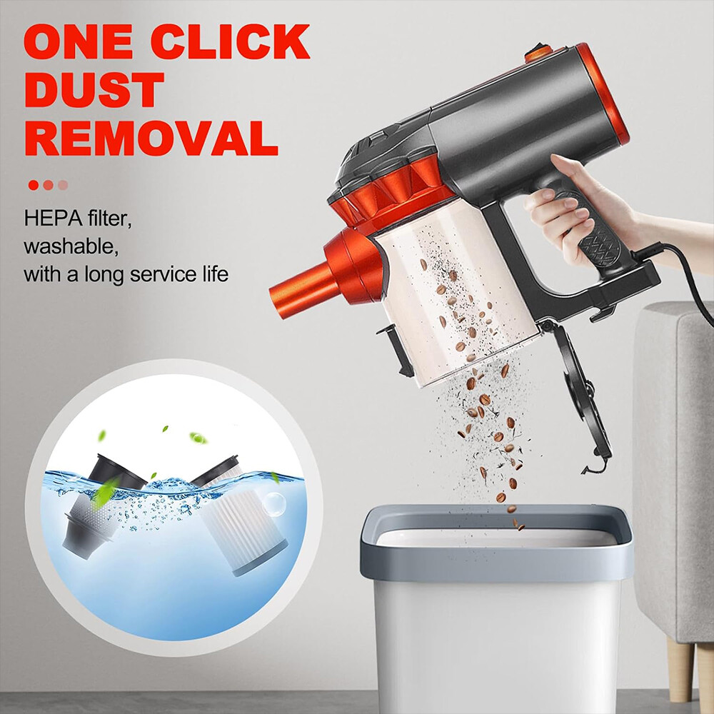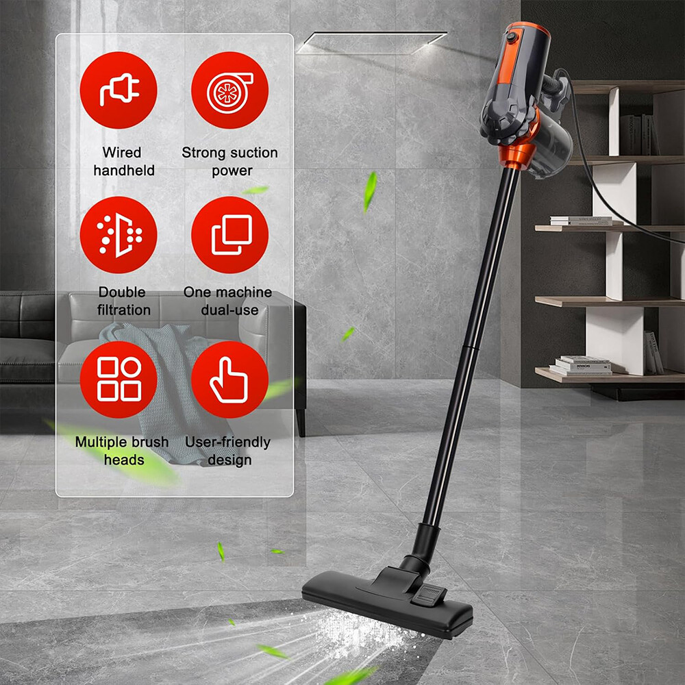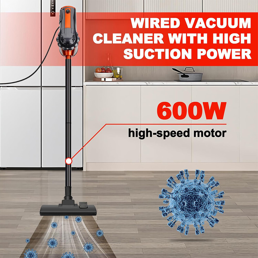 Efficient lightweight corded stick vacuum with bagless design for easy cleaning and powerful suction in homes and offices.