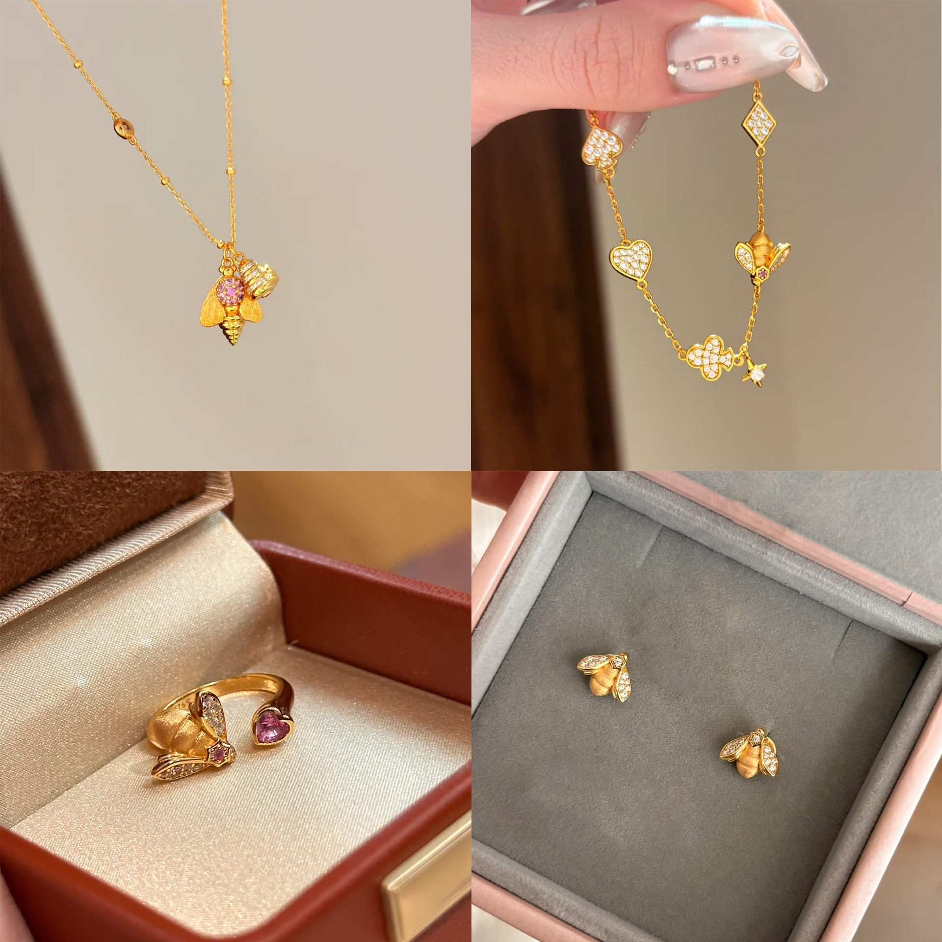 Elegant Little Bee heart-shaped ring adorned with sparkling rhinestones, perfect for stylish and delicate accessory needs.