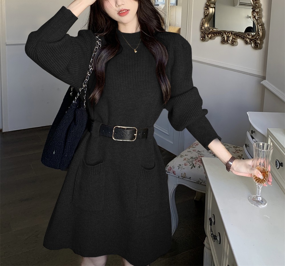 Elegant long sleeve loose knitted dress designed for comfort and style, perfect as a versatile base layer for women.