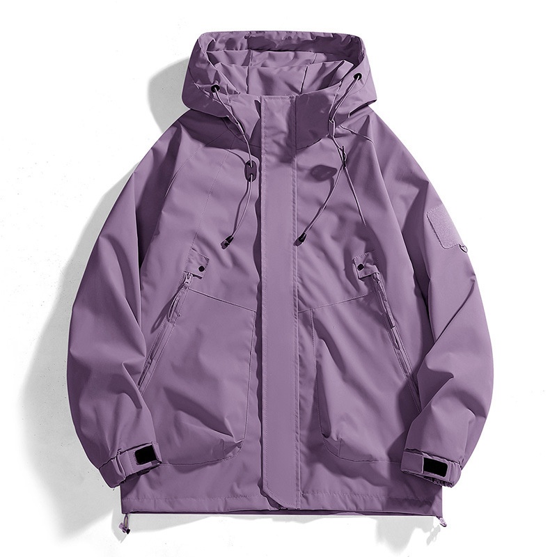 This loose cargo jacket offers robust waterproof protection paired with a practical hooded design. Constructed from high-quality water-resistant materials, it ensures comfort and durability in various weather conditions. The spacious cargo pockets provide ample storage, contributing to its functional appeal. Its loose fit allows for easy layering and unrestricted movement, making it suitable for outdoor activities or everyday wear. The attached hood offers added coverage, enhancing the jacket’s versatility and protective qualities.