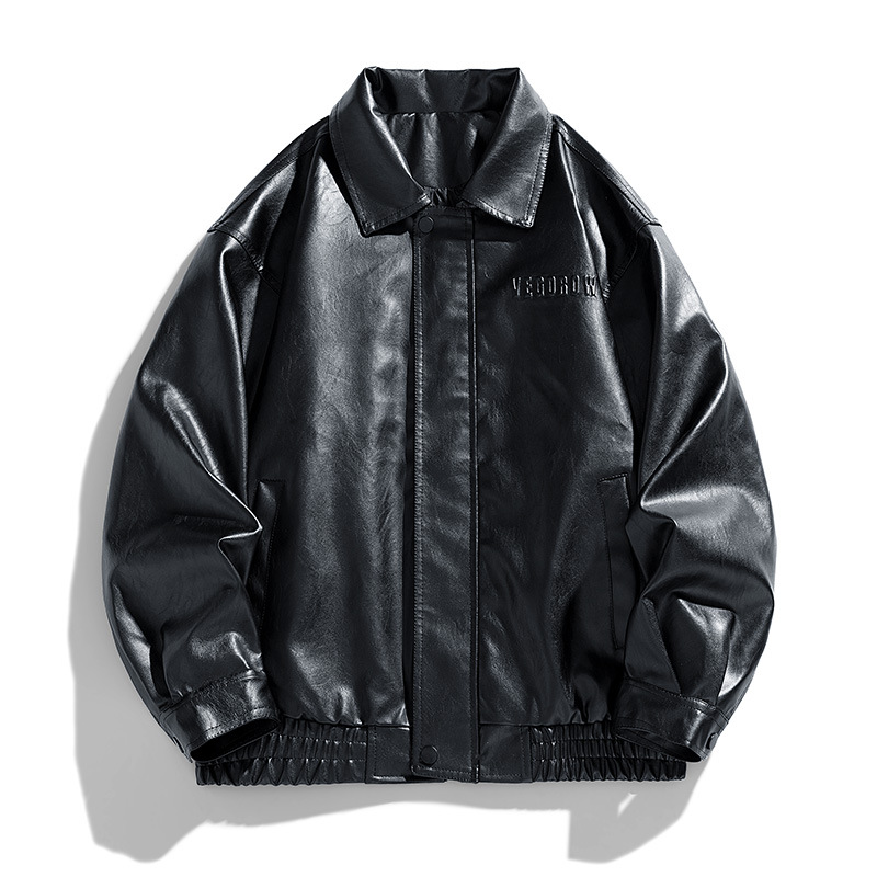 Stylish loose lapel motorcycle jacket crafted from PU leather, featuring a retro American design for a trendy look.