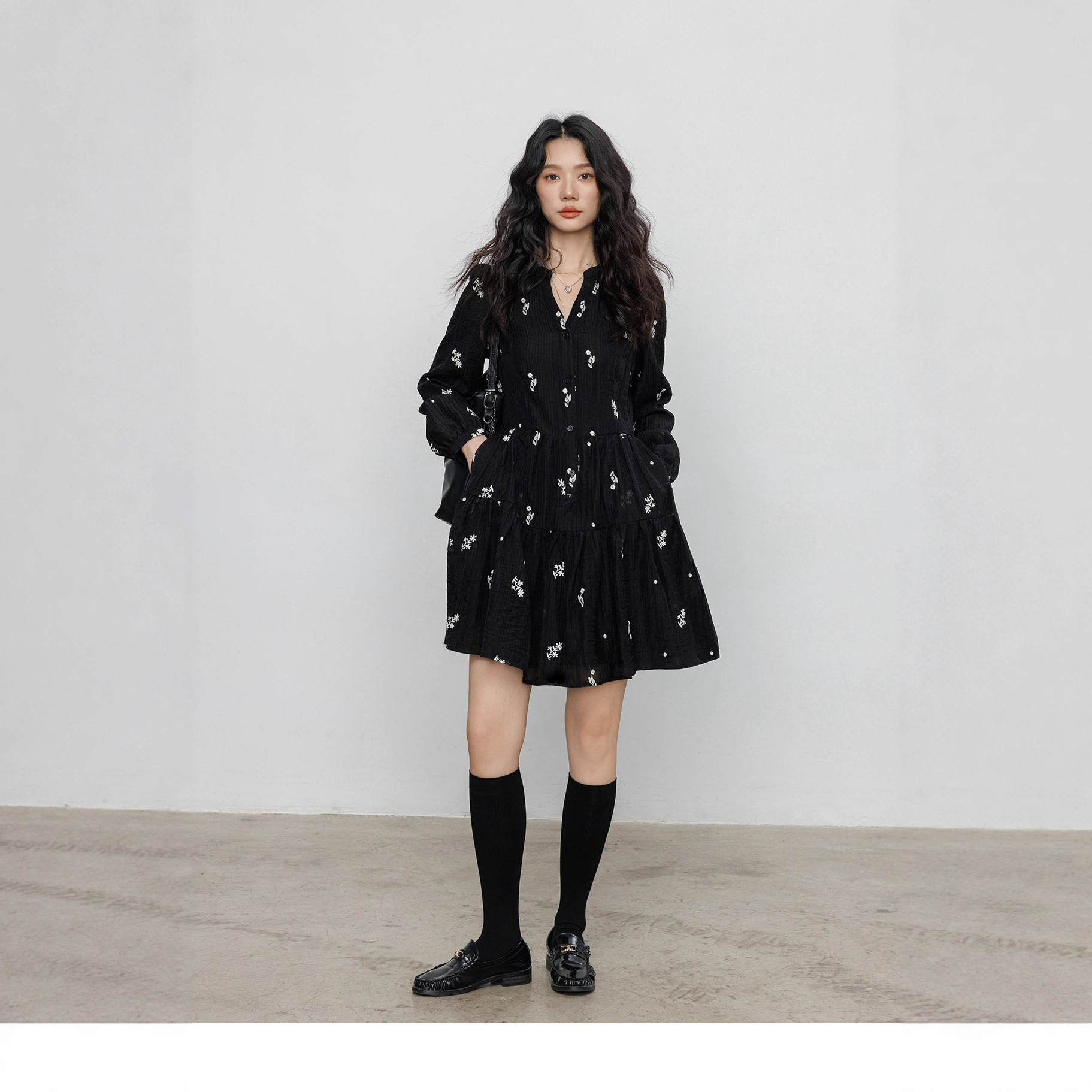 Be the first to review “Loose Large Size Slimming New Black Floral Long Sleeve Dress” Cancel reply