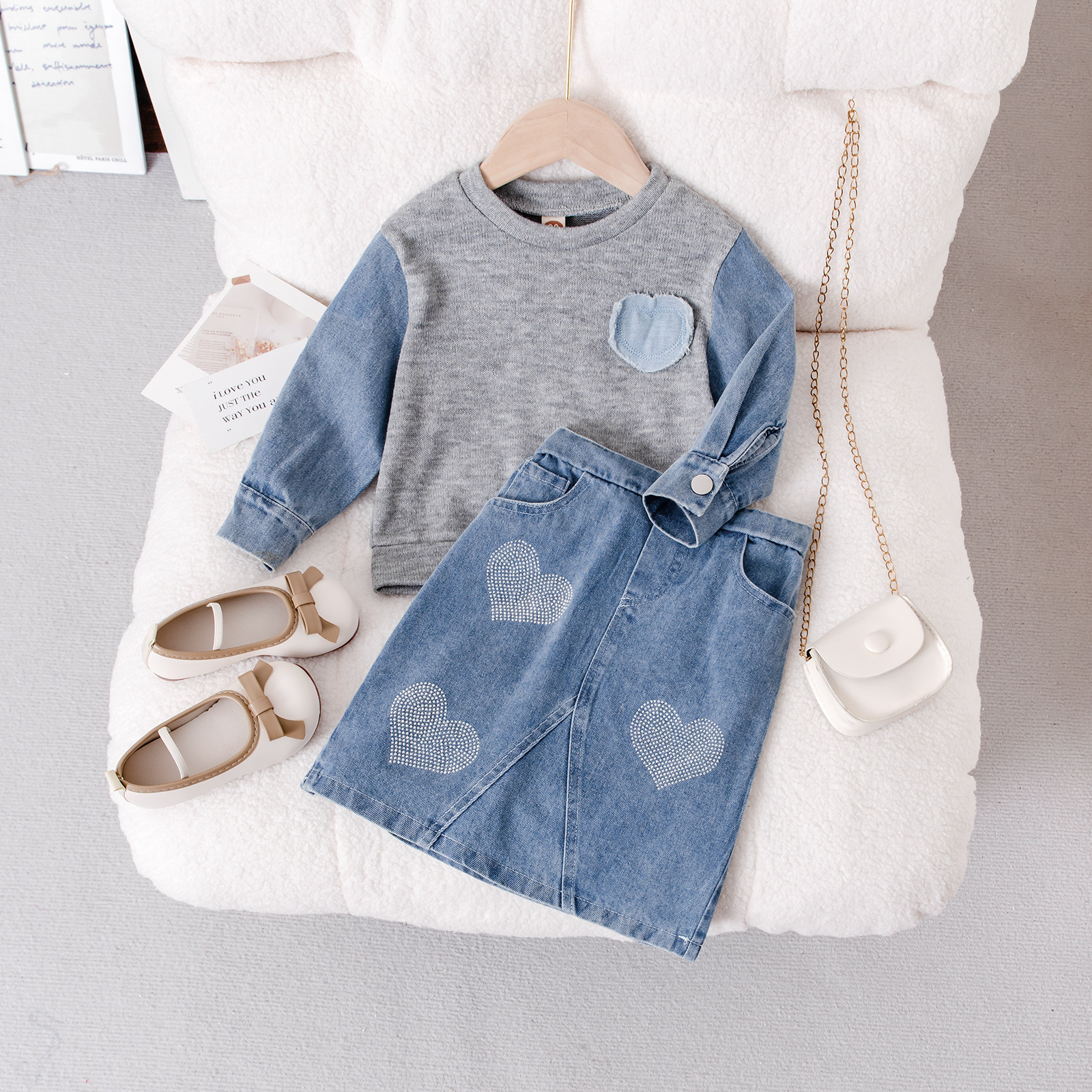 Elegant love bead patchwork princess dress two-piece set featuring a stylish design and comfortable fit for young girls.