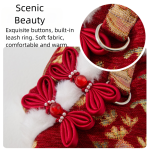 This pet jumpsuit is crafted from luxurious brocade fabric, featuring a traditional Chinese knot closure for an authentic festive look. Designed with a faux fur trim, it provides added warmth and style for your pet during Lunar New Year celebrations. The onesie offers a comfortable fit, allowing ease of movement while showcasing cultural elegance. Ideal for festive occasions, this dog outfit combines traditional design elements with practical comfort.