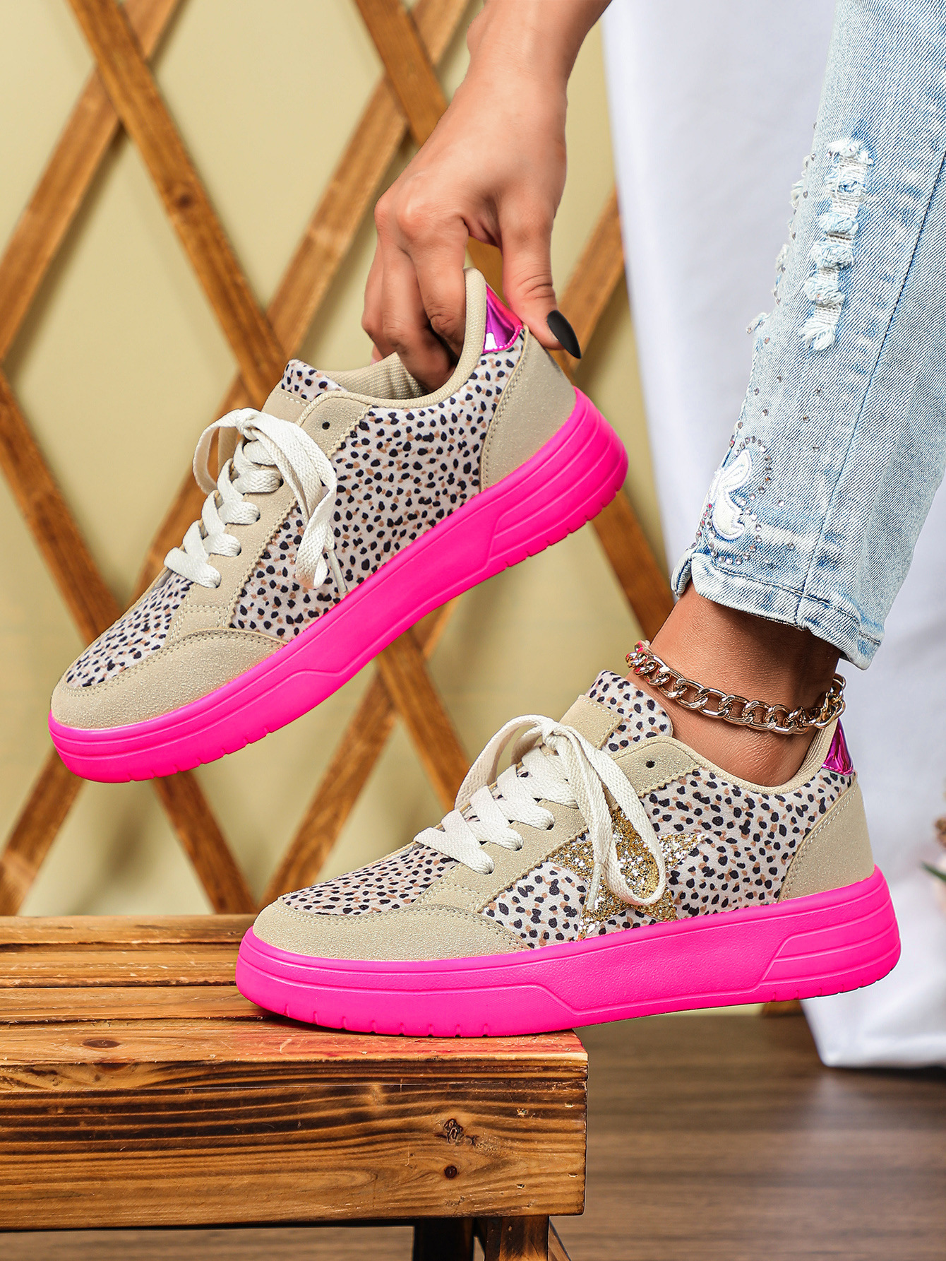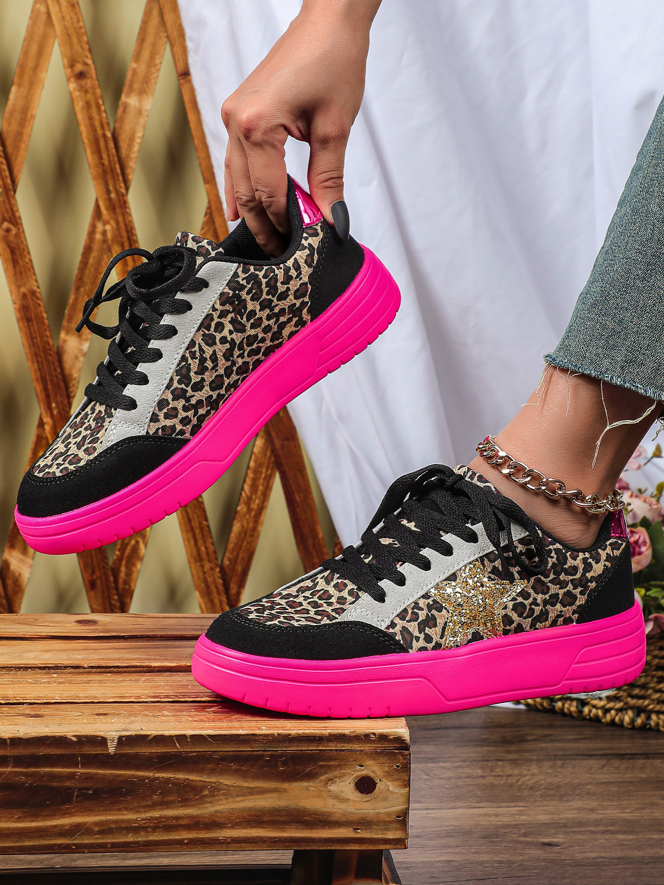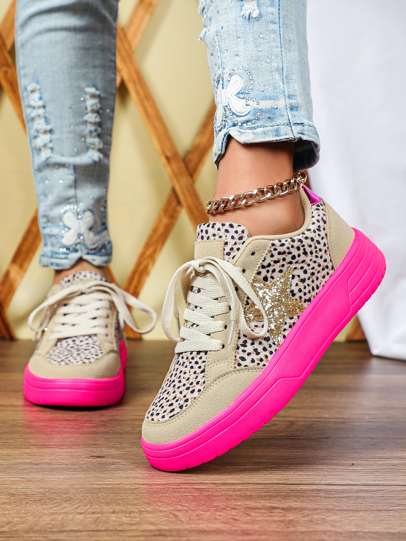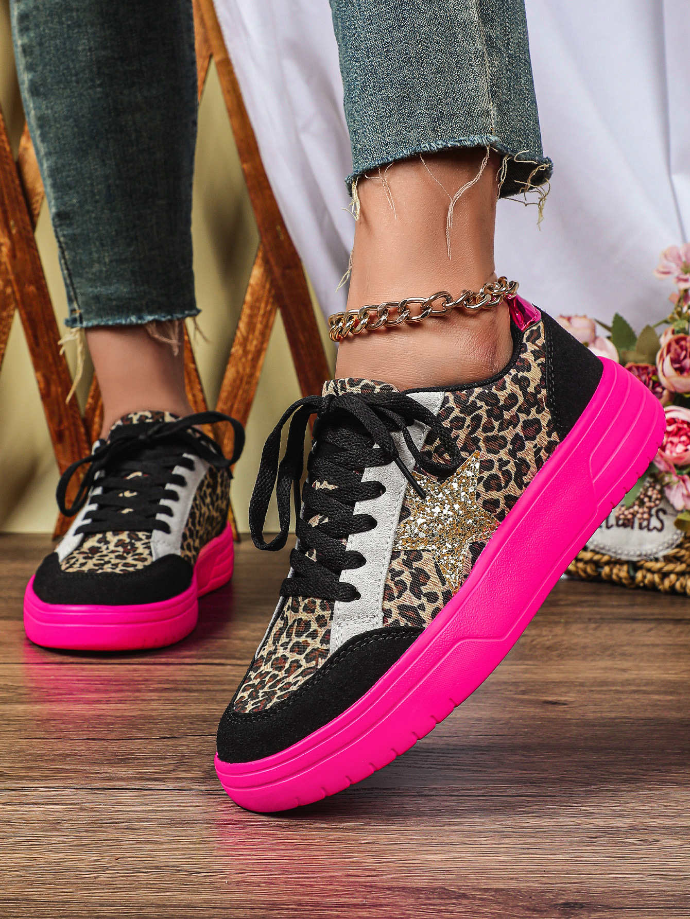 Mens And Womens Leopard-print Skate Shoes With A Personalized Retro Casual Sporty Style