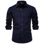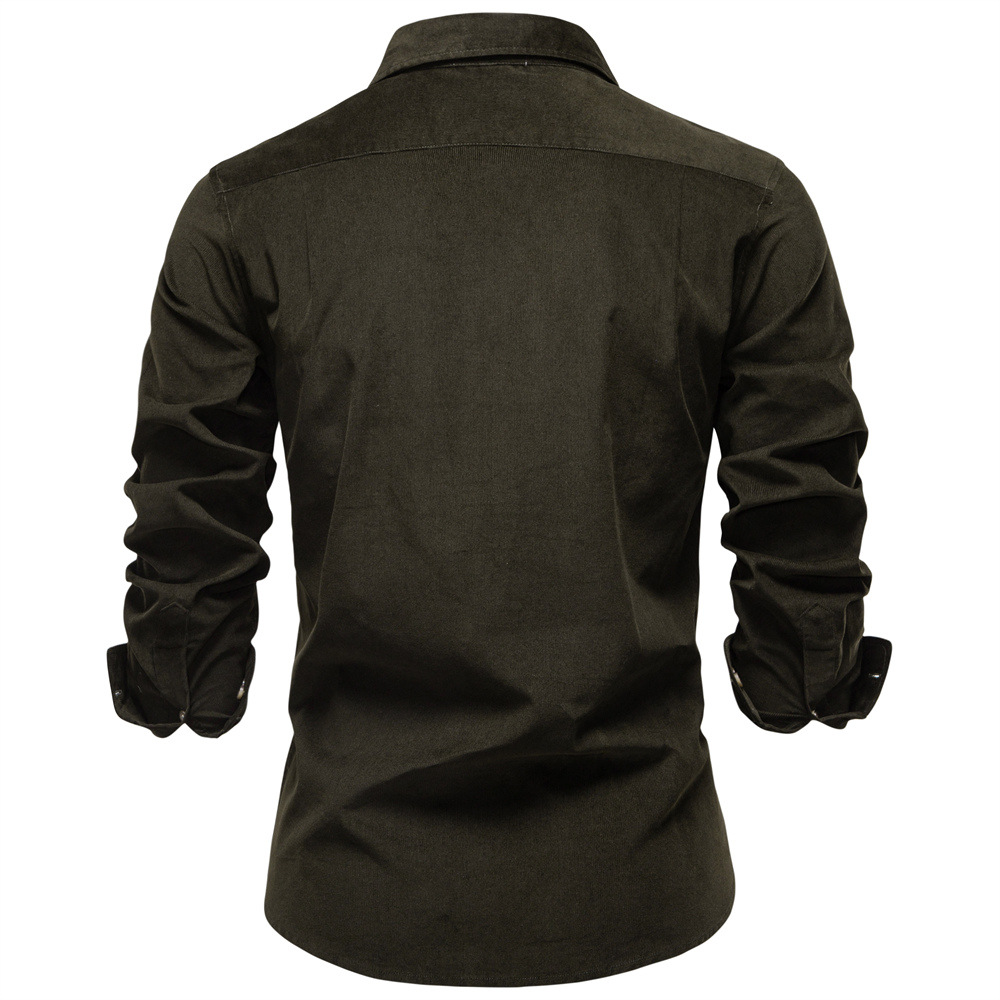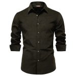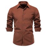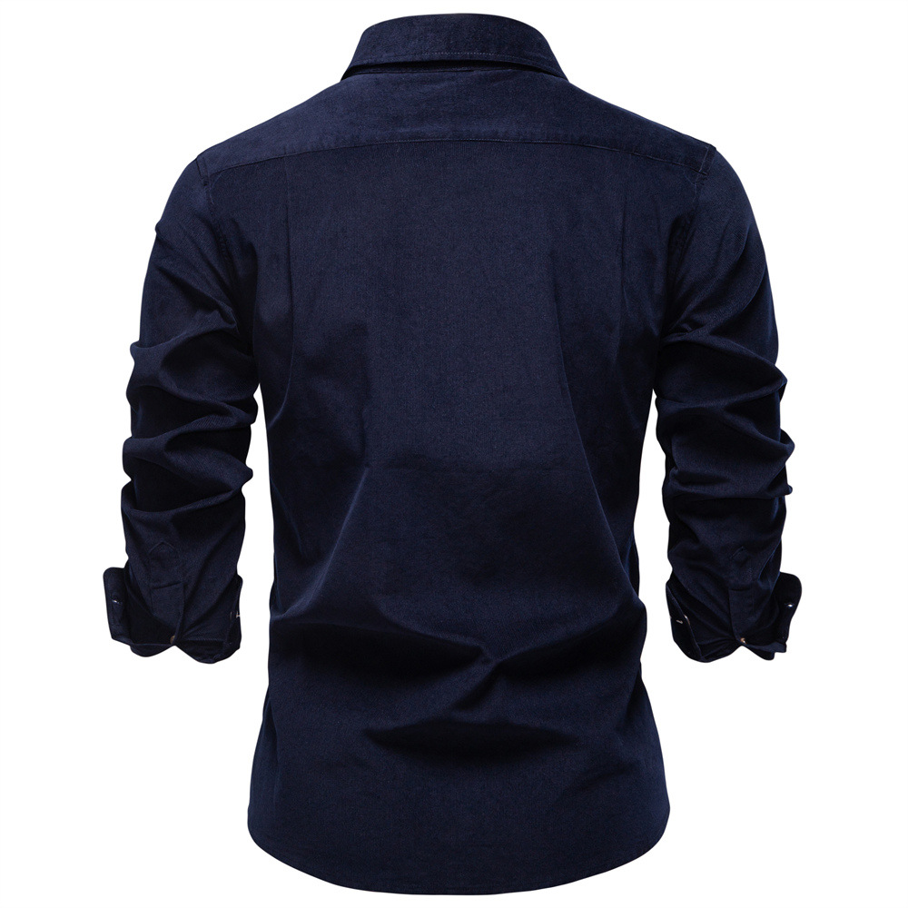 Classic men’s long sleeve shirt in pure cotton corduroy fabric, ideal for business casual attire with comfort and style.
