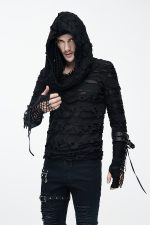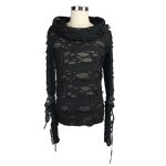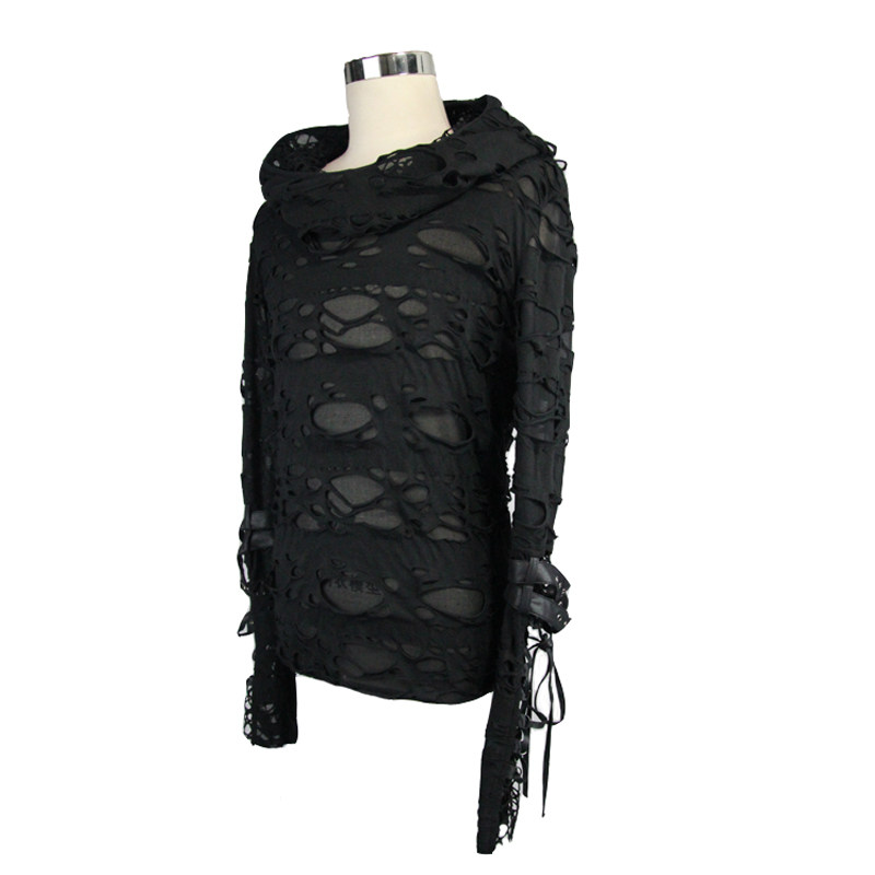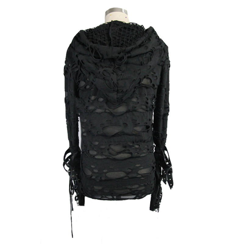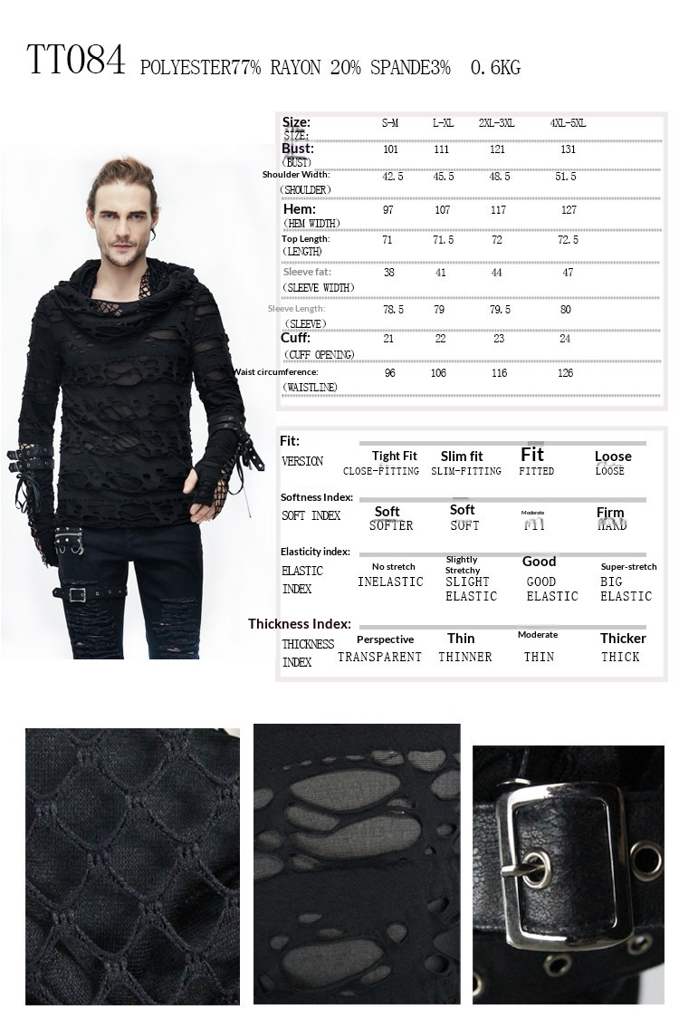 Stylish men’s distressed cropped top featuring hollowed-out details and long sleeves for a modern, edgy look.