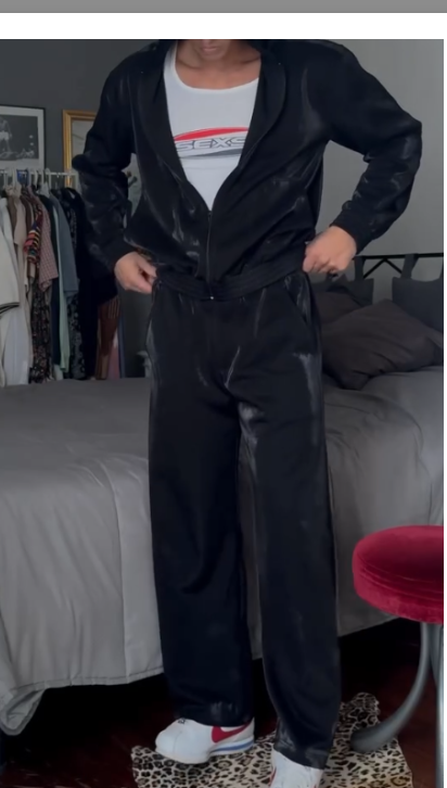 This men’s 2-piece black fashion sports suit features a hooded jacket and coordinating pants crafted for both style and comfort. Made from high-quality, breathable fabric, the suit ensures moisture-wicking and durability suitable for active lifestyles. The hooded jacket includes adjustable drawstrings and a front zipper closure, providing customizable fit and easy wear. The matching pants offer an elastic waistband with a drawcord for secure fit and mobility. Ideal for sports, casual outings, or leisure activities, this set combines functional design with contemporary fashion aesthetics.