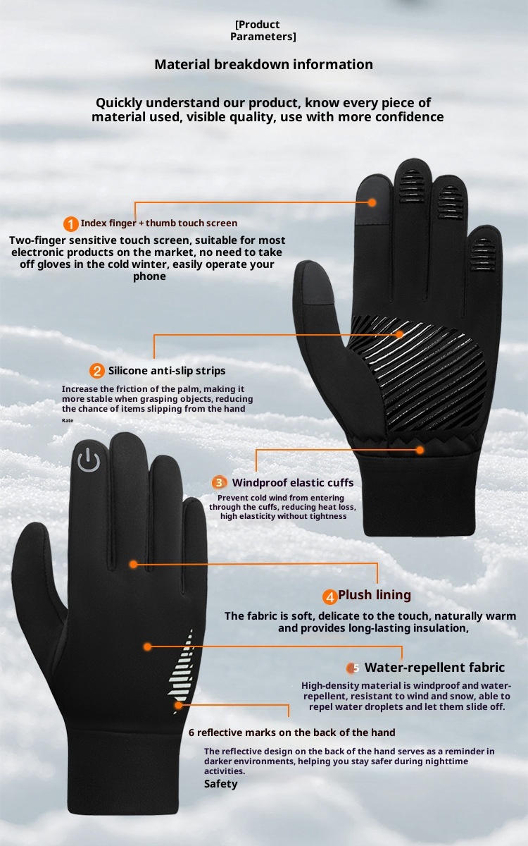 These men’s riding gloves are designed with a thick fleece lining to provide exceptional warmth during cold conditions. Constructed from durable materials, they deliver excellent insulation while maintaining comfort. The anti-slip surface ensures a secure grip, enhancing safety and control during riding activities. These gloves are ideal for outdoor use, combining functional warmth with reliable protection against the elements.