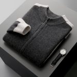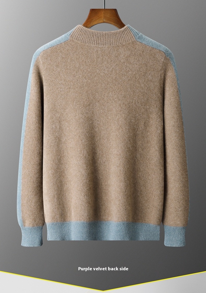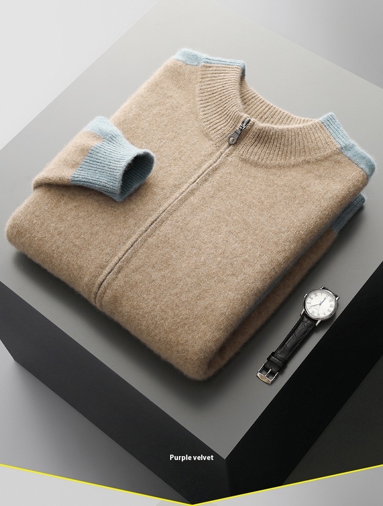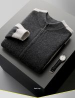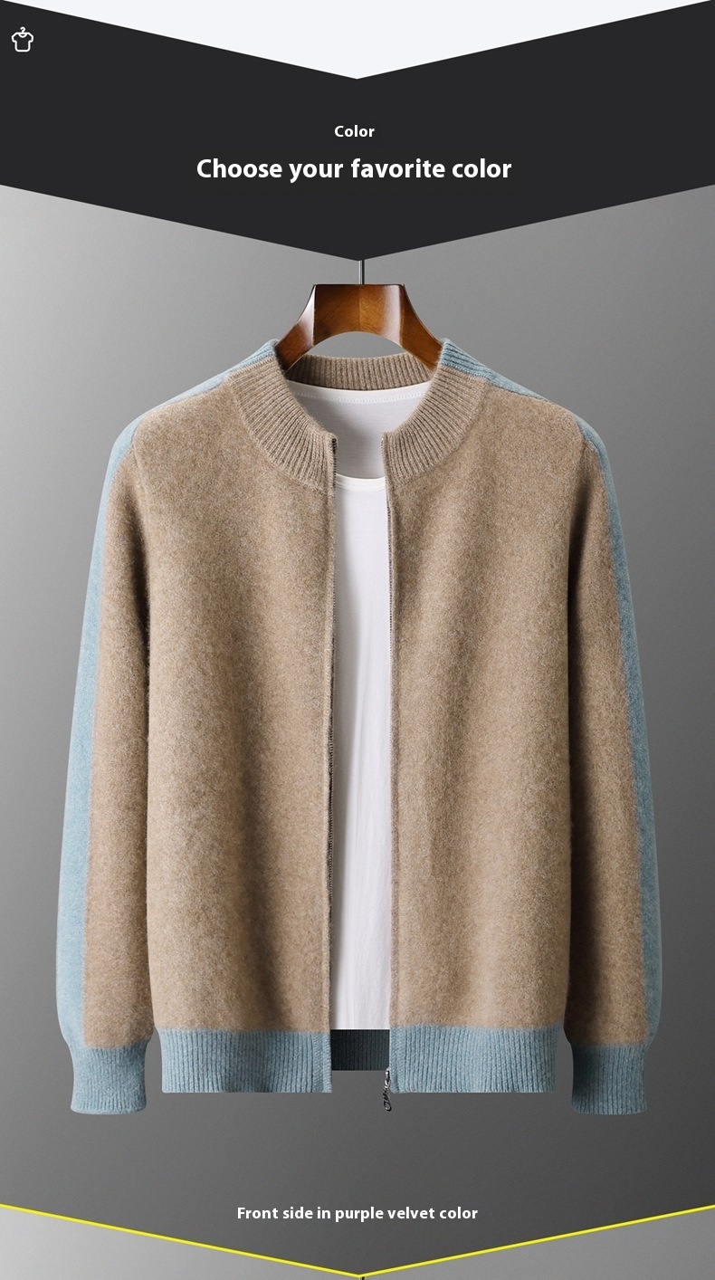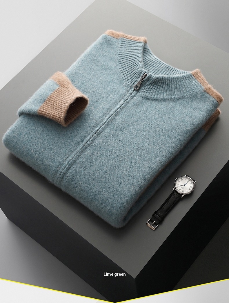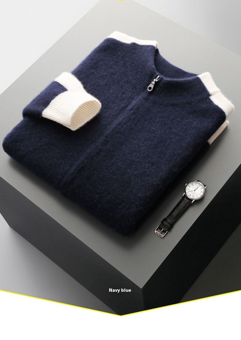 Thickened men’s half turtleneck cardigan with zipper closure, offering warmth and multi-color options for versatile cold weather wear.