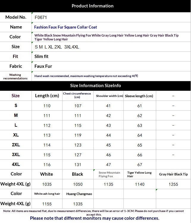 Colors: Black, Tiger-Yellow Long Hair, Yellow Long Hair, Snow Mountain Flying Fox, White, White-Gray Long Hair, Gray Hair with Black Tips
