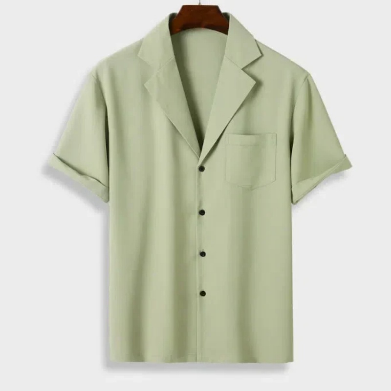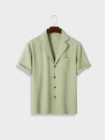 Stylish men’s short-sleeve shirt featuring striped pattern and fashionable lapel collar, ideal for casual and semi-formal occasions.