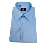 Classic men’s long sleeve shirt with a round collar in solid colors, ideal for both casual and formal wear.
