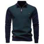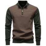 Men’s cotton sweater with standing collar and half zipper, ideal for business casual wear combining comfort and style.