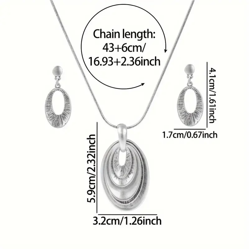 This set includes a mid-ancient style long sweater necklace paired with matching earrings, designed with a distinctive three-layer lap coil. Crafted to provide a versatile accessory option, it complements a variety of outfits with its artistic and vintage appeal. The layered design adds depth and character, making it suitable for both casual and formal occasions. Its lightweight construction ensures comfortable wear throughout the day while enhancing any attire with a unique, timeless elegance.