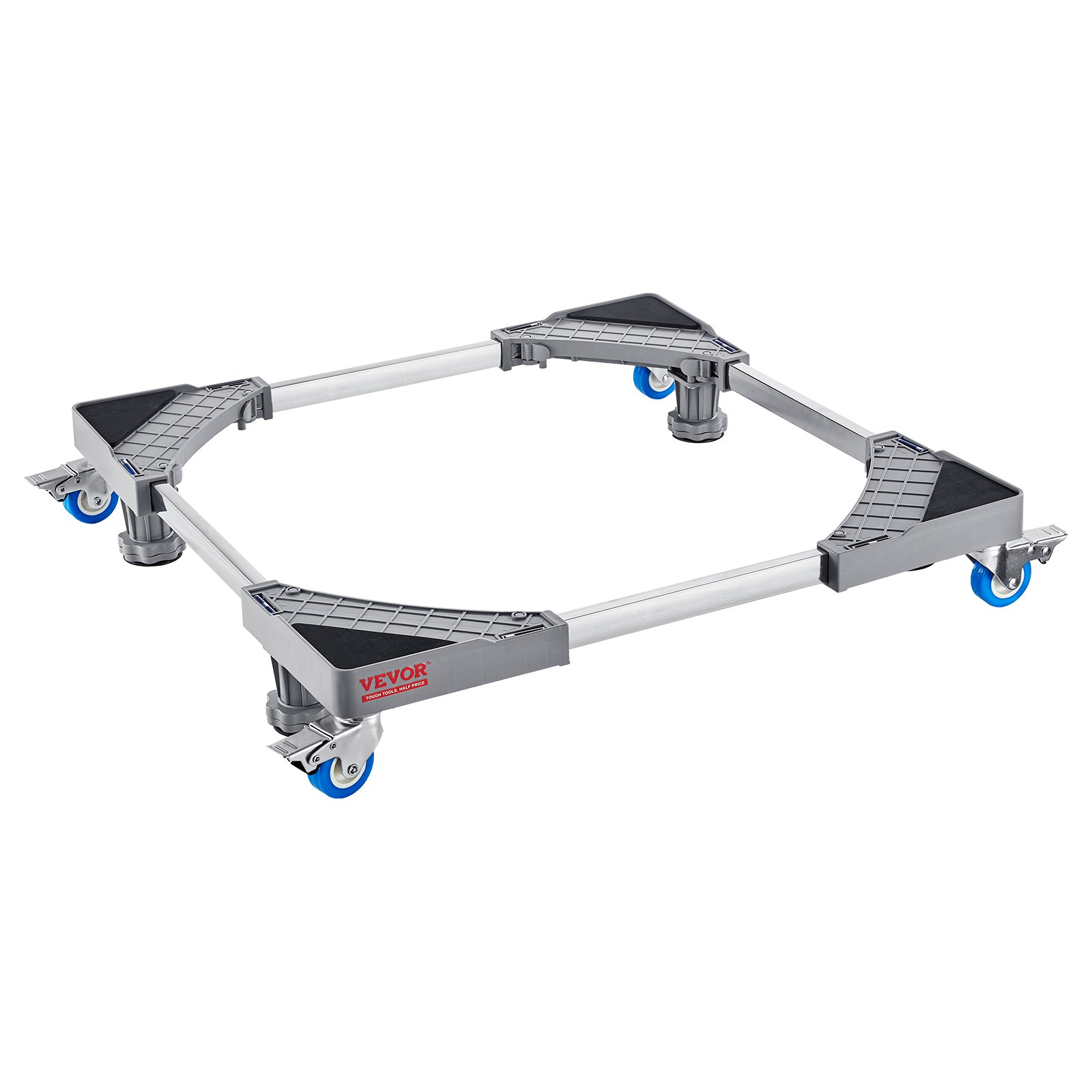 Durable adjustable stand with 181.4 kg capacity, locking swivel wheels, ideal for refrigerators, washers, and dryers.