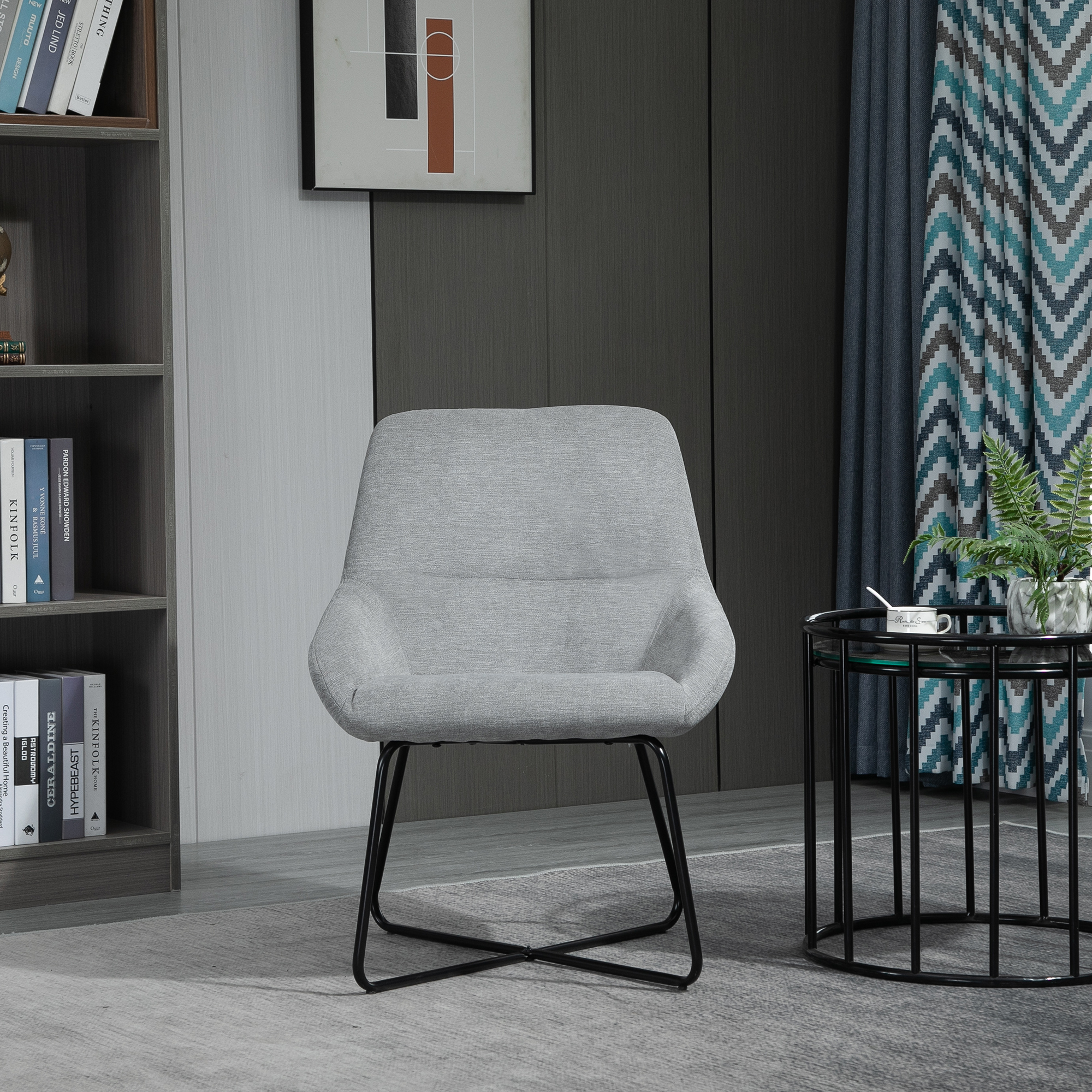 This modern accent chair combines contemporary style with practical comfort, featuring a mid-back design that supports relaxation. The chair is constructed with a sturdy X-shaped frame for enhanced stability and a distinct curved back contour for ergonomic support. Its sleek profile and stylish form make it a versatile addition to any living room setting, merging aesthetic appeal with functional seating solutions.