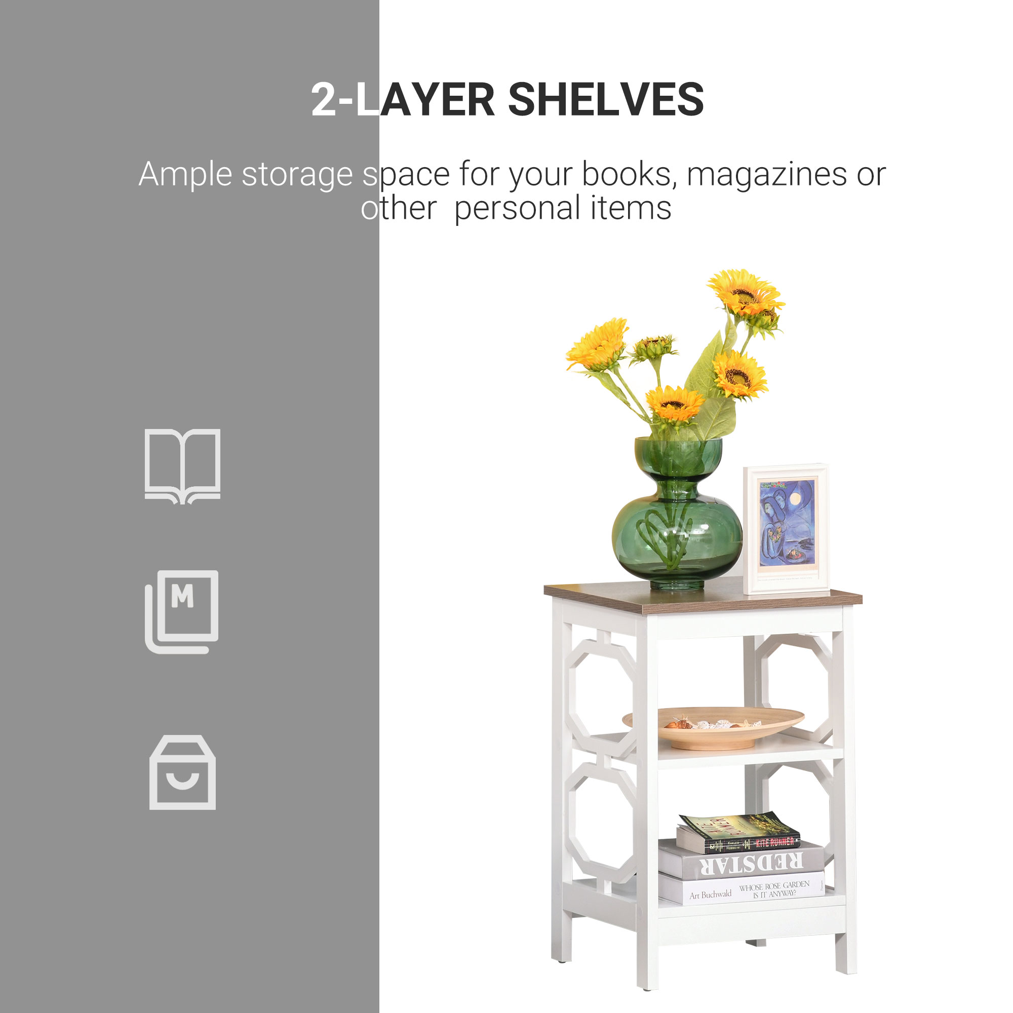 This modern end table offers a stylish and functional addition to any living space. Crafted from high-quality materials, it combines durability with a sleek, minimalist design. The compact size allows for versatile placement beside sofas, chairs, or beds, providing a convenient surface for lamps, books, or decorative items. Its clean lines and contemporary finish complement various interior styles, making it an ideal accent piece for homes and offices alike.