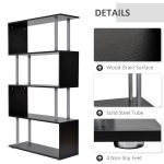 This modern S-shaped 5-tier bookcase serves as both a room divider and a versatile display stand. Crafted to maximize space utilization, the shelf features five tiers designed to hold books, decorative pieces, or personal collections. Its distinctive S-shaped design adds a contemporary aesthetic while offering stability and functionality. Ideal for open-plan living spaces, the unit effectively separates areas without compromising natural light. Constructed from durable materials, this bookcase provides reliable storage and elevates interior decor with its sleek, minimalist structure. Suitable for residential or office settings, the shelf balances style and practicality in a compact footprint.