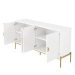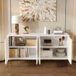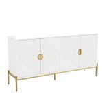 This modern, light, and luxurious geometric sideboard impresses with its simple and elegant white color palette, complemented by striking geometric 3D textures and golden metal accents that create a unique mid-century modern style. The thoughtfully designed interior makes it a wonderful addition to any home! It ensures the durability of the cabinet while adding a sense of depth. The metal legs enhance the stability of the cabinet and give the space a modern touch. Whether placed in the living room, dining room, or entryway, this sideboard blends seamlessly with any home décor and stands out as a remarkable piece of furniture that combines aesthetics and functionality.