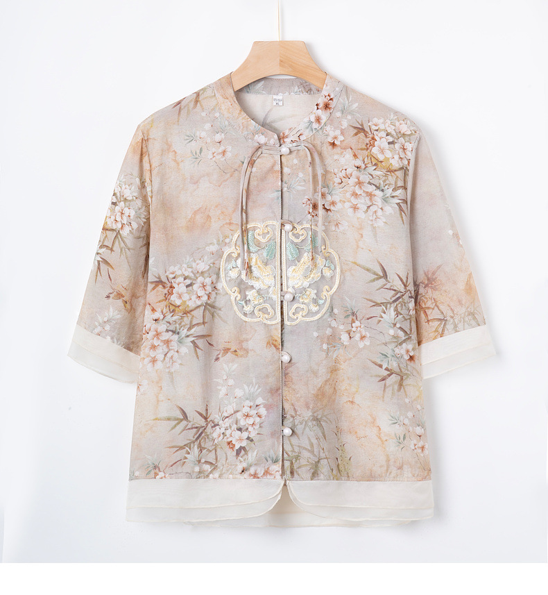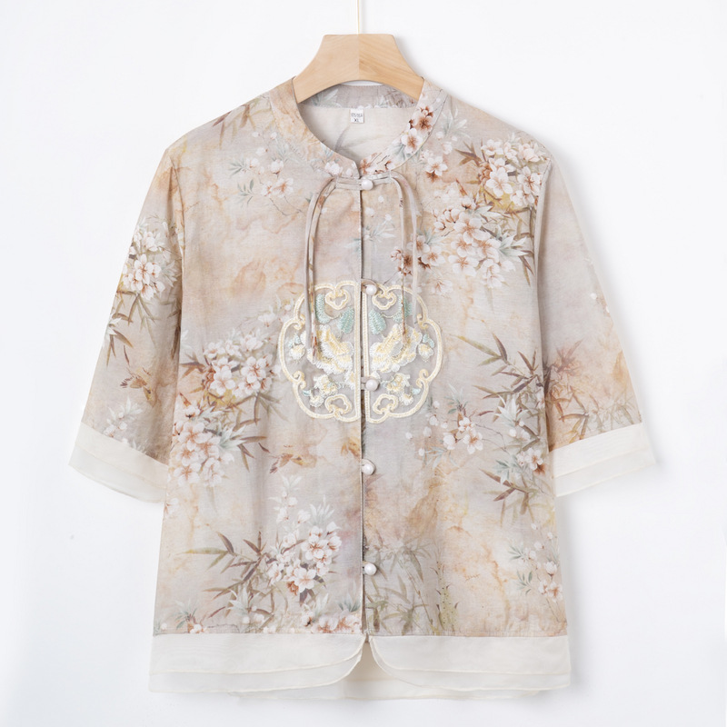 Elegant national style two-piece shirt set for women, ideal for spring and summer wear with a comfortable small shirt design.