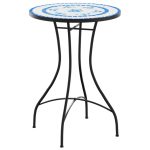 Elegant blue and white ceramic mosaic bistro table, Ø50×70 cm, perfect for stylish indoor and outdoor dining spaces.