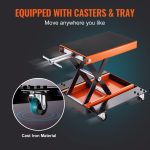 This motorcycle lift ATV scissor jack dolly supports up to 499.5 kg, featuring a wide deck for enhanced stability and safety. Designed with a durable hand crank mechanism, it facilitates smooth and controlled lifting of motorcycles, ATVs, and other similar vehicles. The compact scissor design allows for easy maneuverability and storage, making it ideal for garage or workshop use. Its robust construction ensures reliable performance during vehicle maintenance, repairs, or transport.