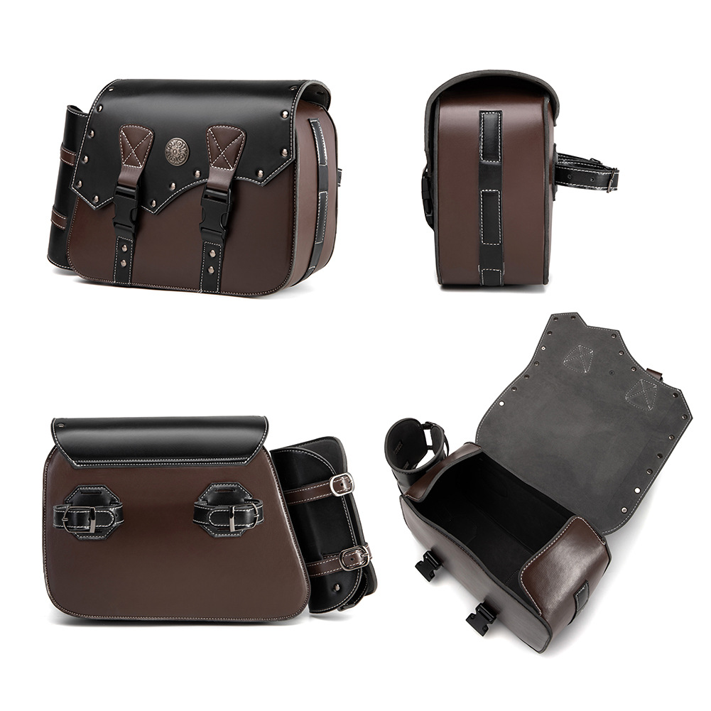 These motorcycle panniers are specifically designed for outdoor riding and modification purposes. Crafted from robust materials, they provide ample storage space while ensuring durability and protection against various weather conditions. The panniers offer a secure attachment system compatible with most motorcycle models, facilitating easy installation and removal. Ideal for riders seeking functional and reliable storage solutions, these accessories enhance the overall riding experience by organizing gear efficiently during long trips or daily commutes.