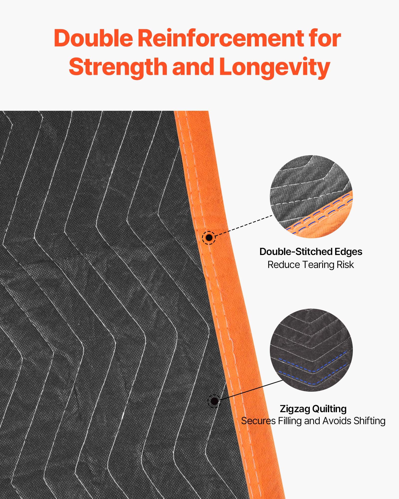 This set includes six heavy-duty moving blankets, each measuring 80 by 72 inches and weighing 35 pounds per dozen. Crafted with durable nonwoven fabric and filled with cotton padding, these large packing blankets provide excellent protection for furniture and fragile items during moving, shipping, or storage. Their robust construction minimizes damage risks, making them ideal for wrapping and safeguarding household goods.