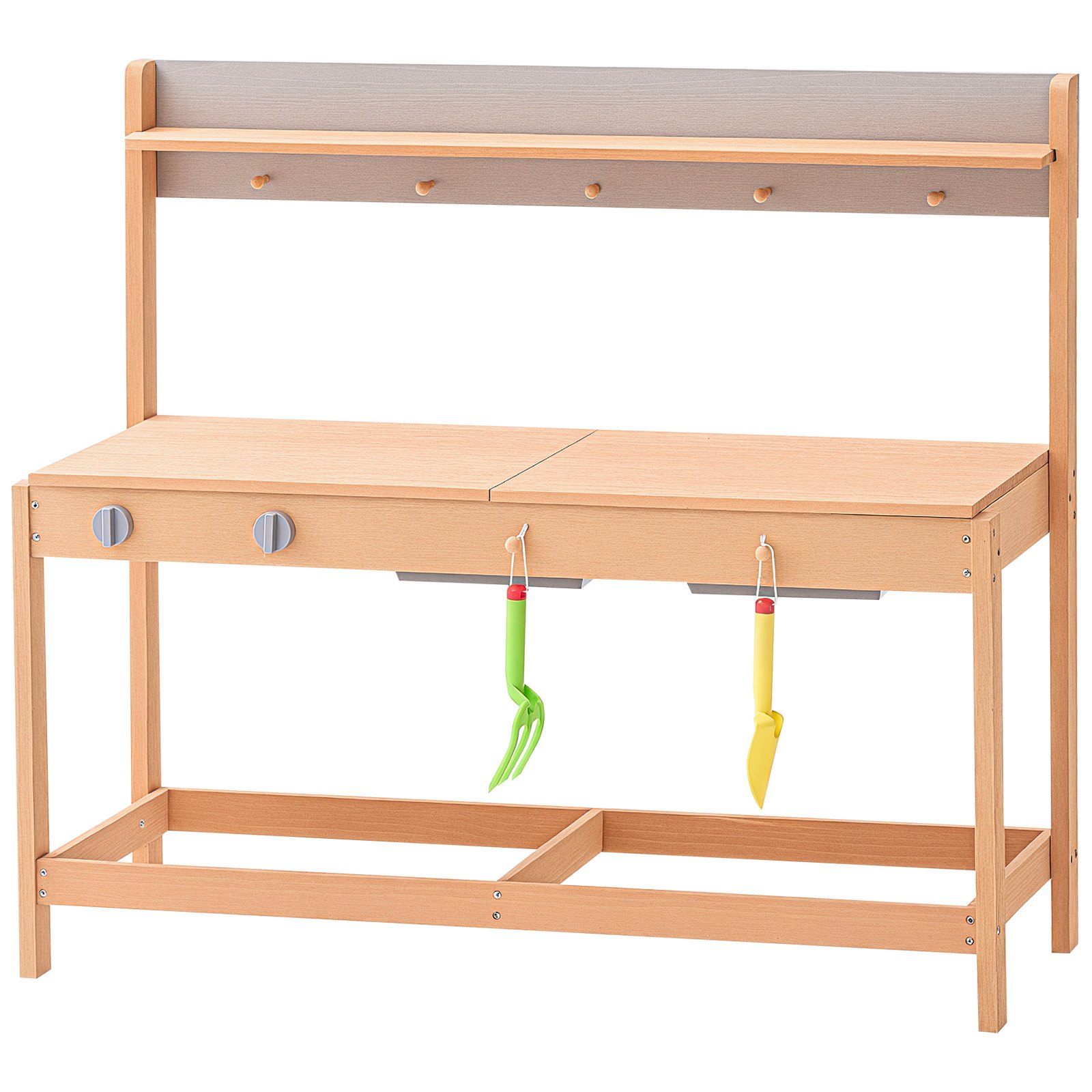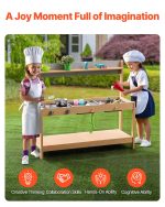 This wooden mud kitchen set is designed for children to engage in imaginative outdoor play. The sturdy wooden construction includes a stove and sink, providing a realistic pretend cooking experience. Equipped with various accessories, it encourages creative role-playing as a grocery store or kitchen, suitable for boys and girls. The playset promotes sensory development and social interaction while being durable for outdoor use. Ideal for toddlers and young children to explore cooking activities in a safe and fun environment.