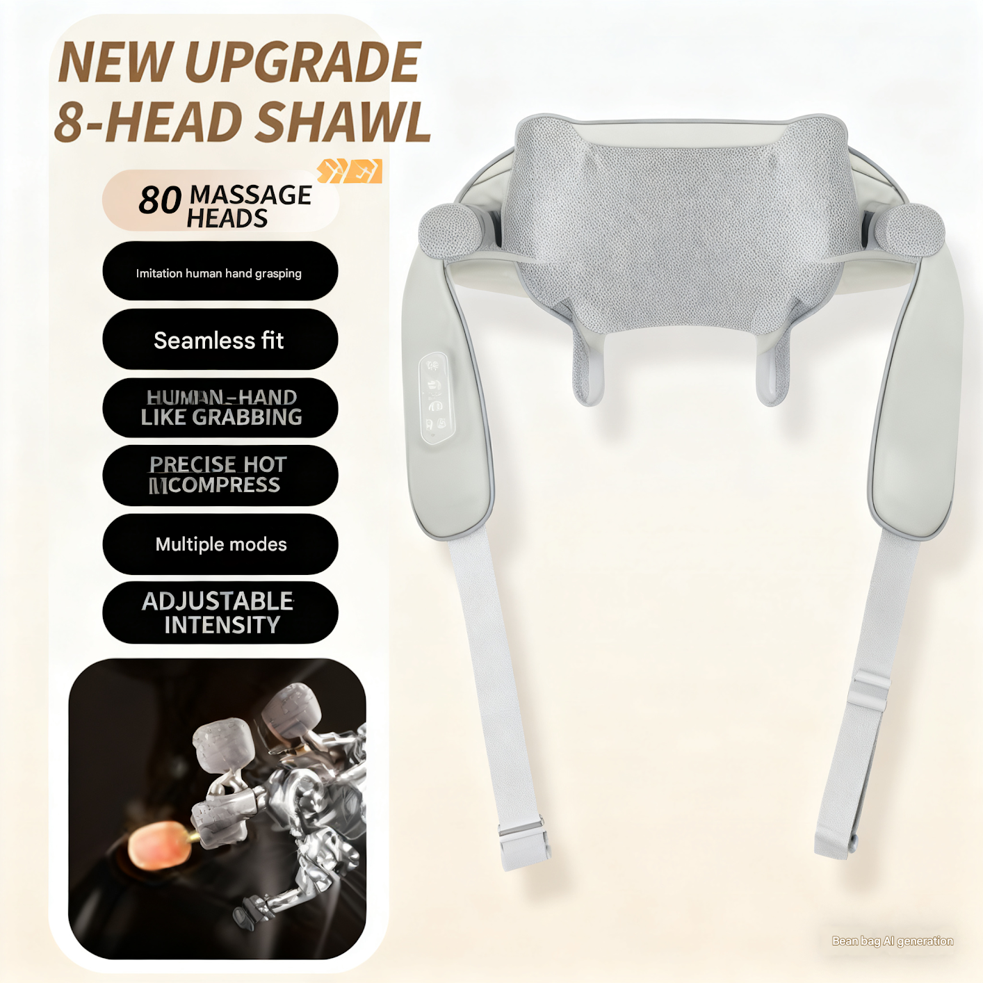This multi-functional neck and shoulder massager is designed to replicate the touch of human hands, providing effective relief for the cervical spine and trapezius muscles. Crafted for home use, the device supports the neck while delivering targeted massage therapy to alleviate muscle stiffness and improve blood circulation. Its ergonomic shawl design ensures comfortable wear and easy adjustment around the neck and shoulders, making it ideal for reducing tension and promoting relaxation in daily routines.