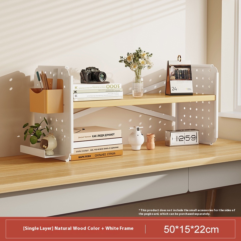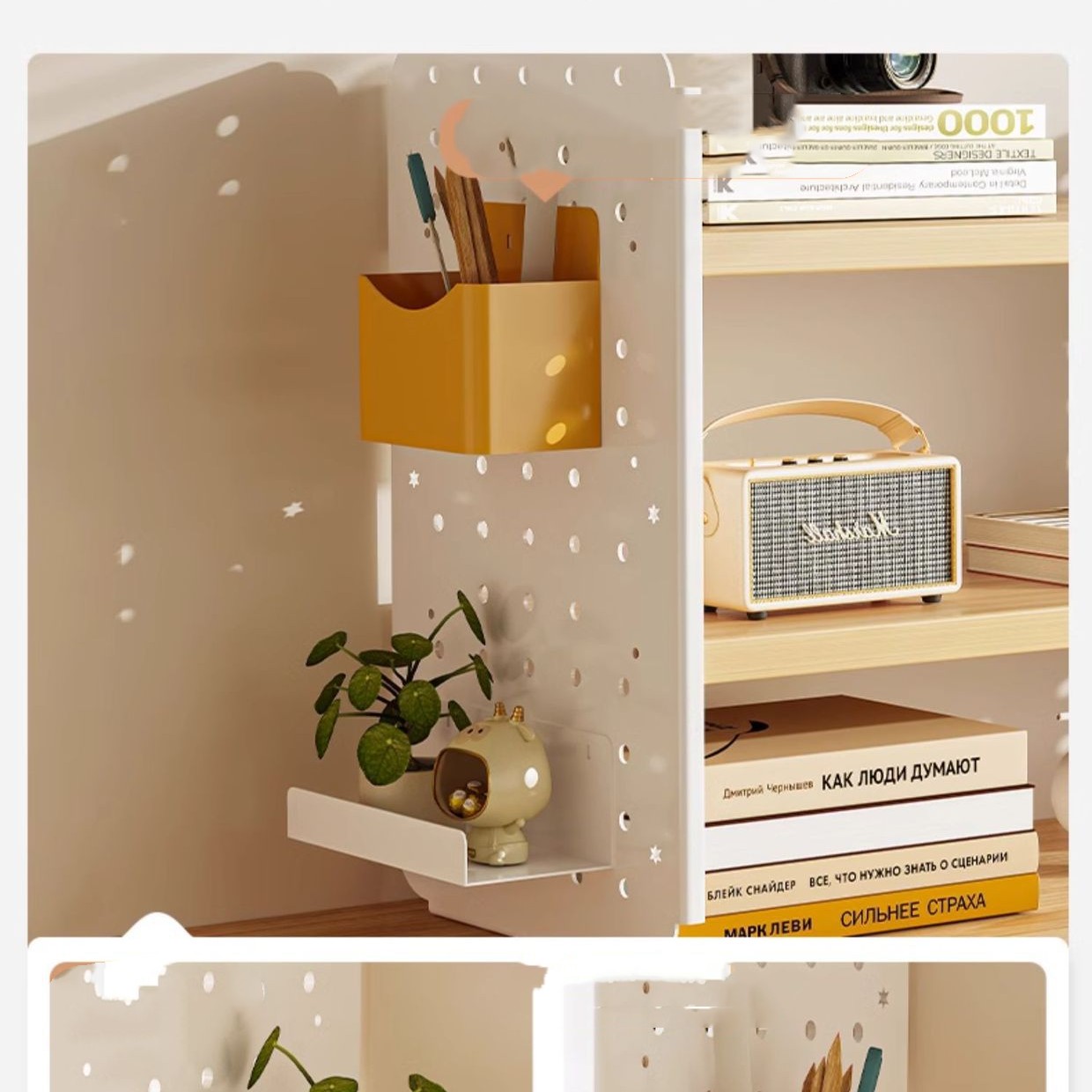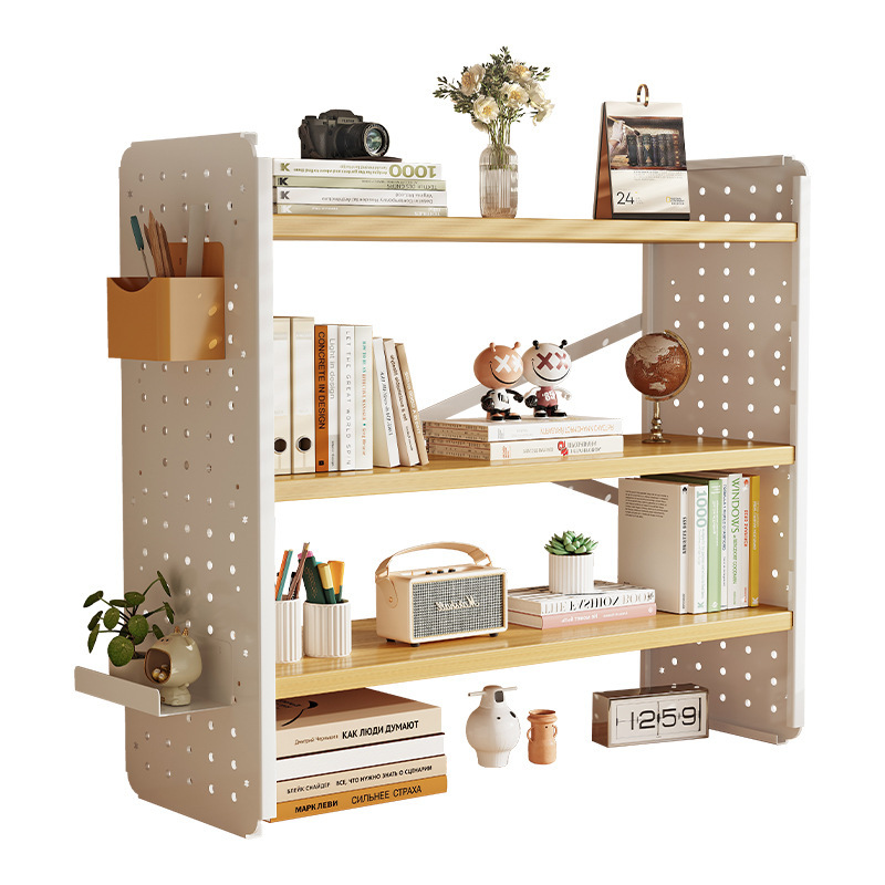Durable multi-layer storage rack designed for office workstations, ideal for organizing and displaying office supplies efficiently.