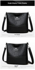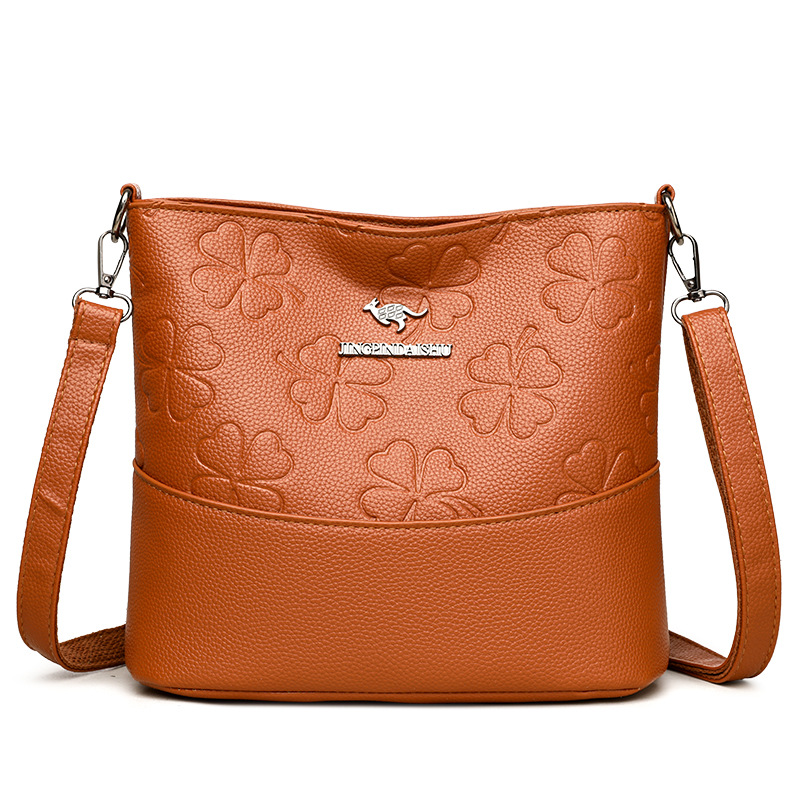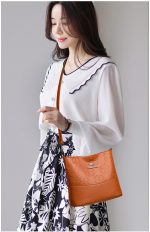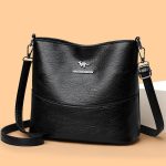Spacious multi-layer soft leather bucket bag designed for women’s shoulder use, combining style and practicality in a messenger design.