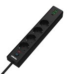 Durable black multifunctional socket offering various outlets for versatile electrical connections in home and office settings.