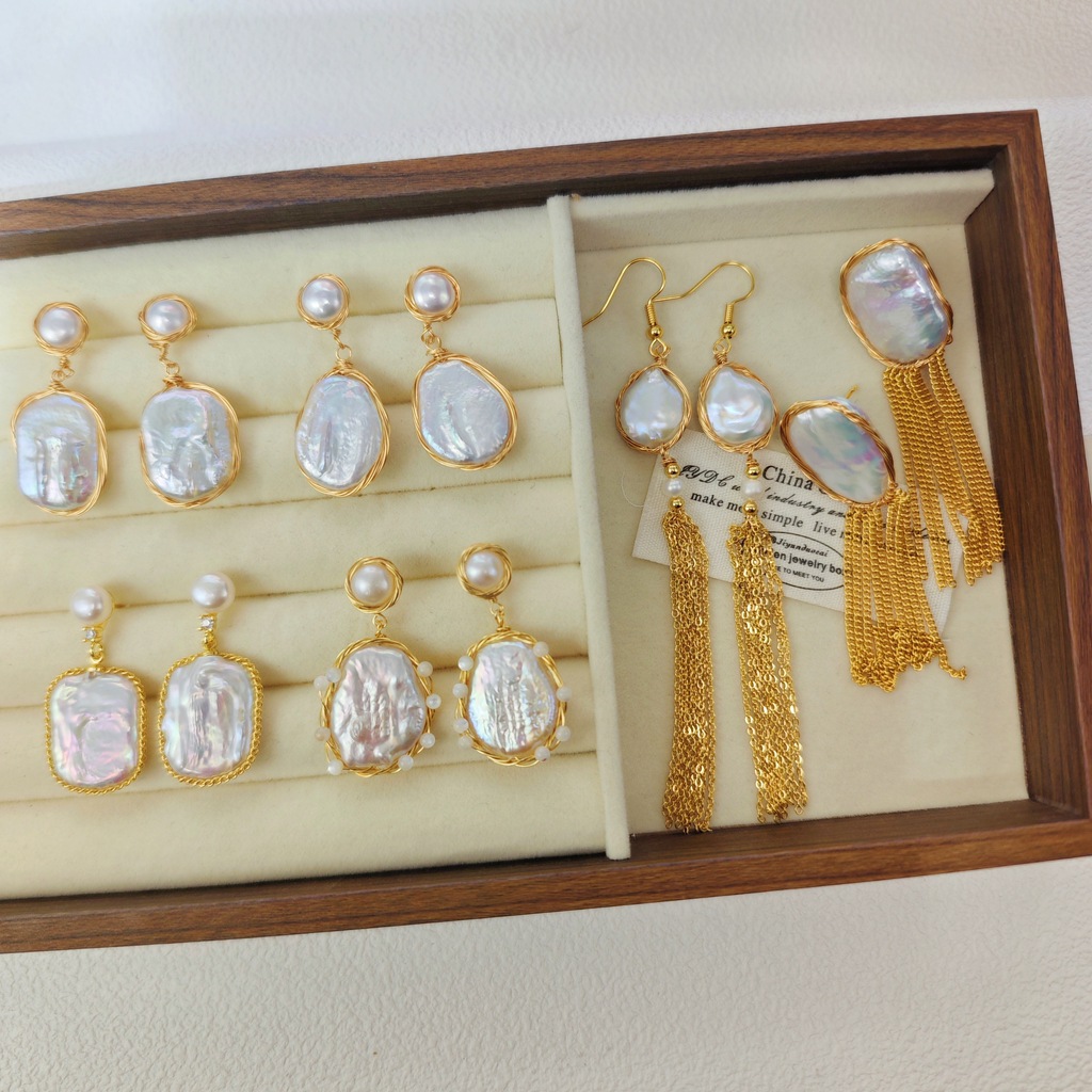 Be the first to review “Natural Freshwater Baroque Pearl 18k Gold-Plated Wrapped Wire Statement Earrings” Cancel reply