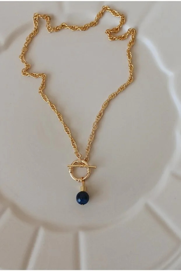 This necklace features a natural stone pendant with a front lock design, mounted on a sleek chain that exemplifies minimalist elegance. Crafted to combine simplicity and sophistication, it serves as a versatile accessory suitable for various occasions. The use of natural stone adds unique texture and visual appeal, making it an ideal fashion jewelry gift for women who appreciate refined, understated style.