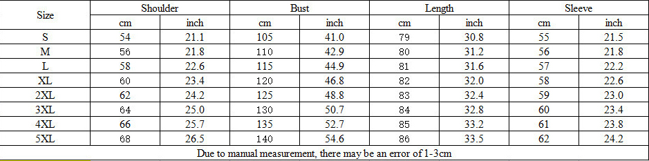 Sizes: S, M, L, XL, 2XL, 3XL, 4XL, 5XL