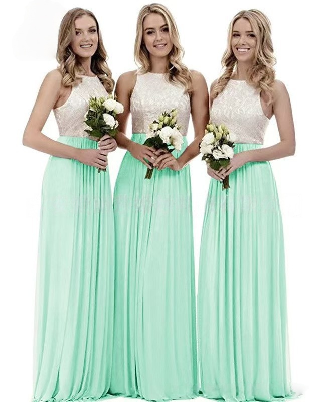 Sophisticated slim-fit long lace bridesmaid dress, perfect for spring events with modest and elegant design.