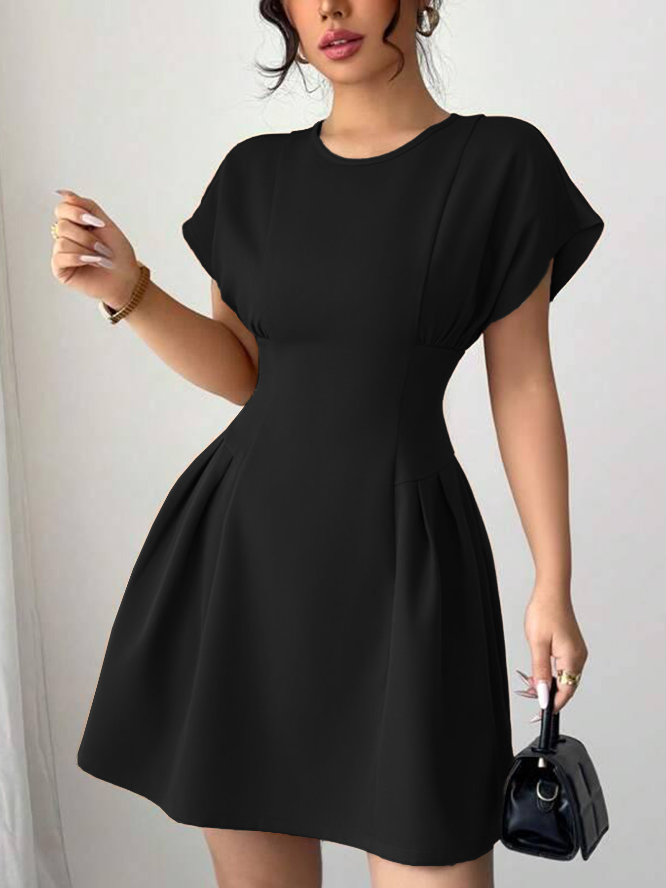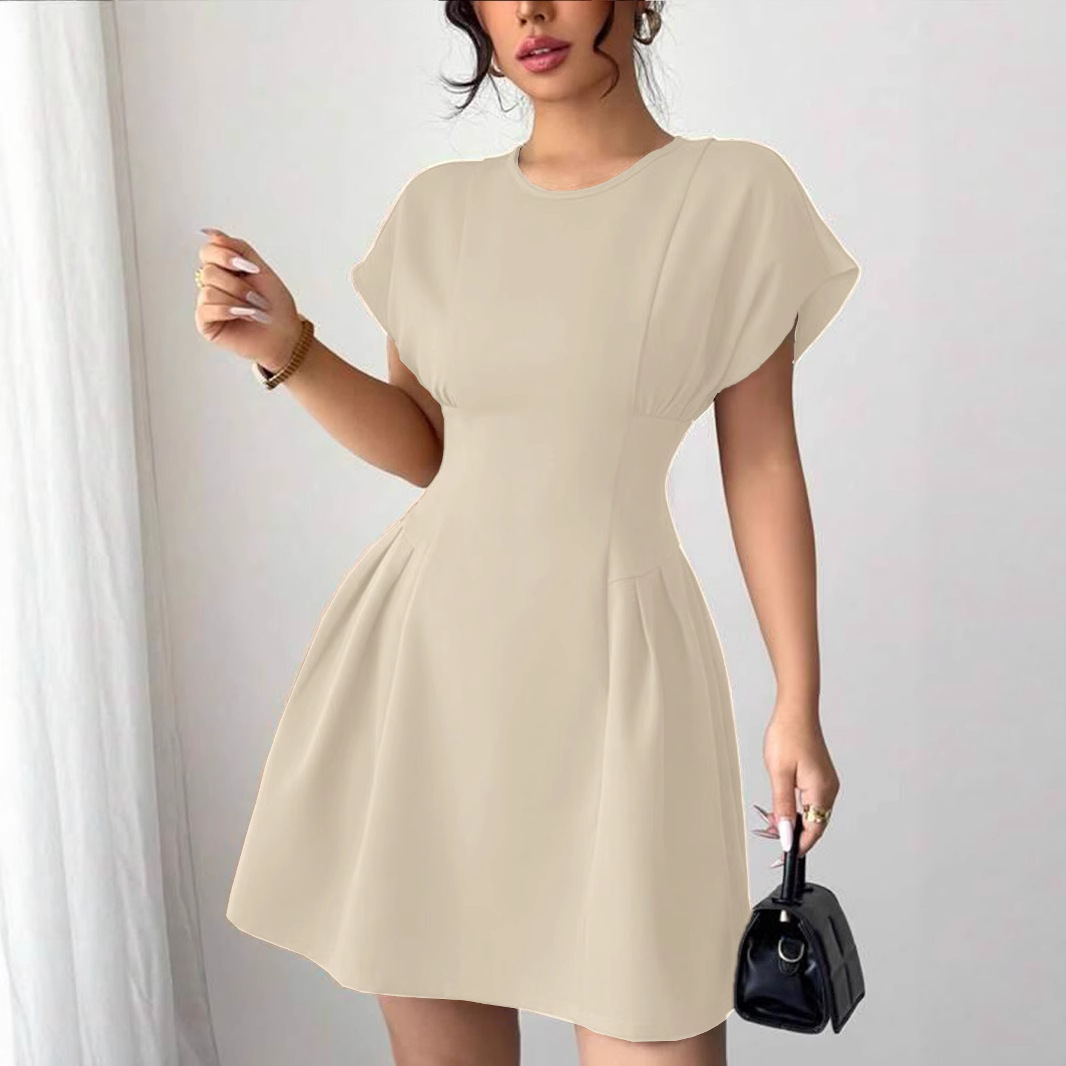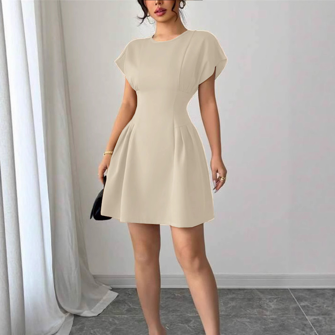 Slim-fit high-waist dress featuring a simple waist tie and elegant solid color design, perfect for a refined look.