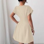 This elegant slim-fit dress is designed with a high waist and a simple waist tie, emphasizing a flattering silhouette. Crafted from smooth, solid color fabric, it offers a minimalist yet sophisticated appearance suitable for various occasions. The dress combines comfort and style, making it an excellent choice for those seeking a sleek and polished outfit.