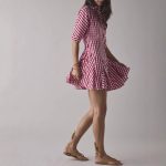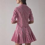 This French-inspired dress showcases a vibrant red plaid pattern, designed to accentuate the waist with its cinched silhouette. Crafted from high-quality fabric, it combines comfort with sophistication. The tailored fit enhances the natural shape, making it suitable for both casual and semi-formal occasions. Its timeless plaid motif and carefully structured waist detail provide a flattering and elegant appearance.