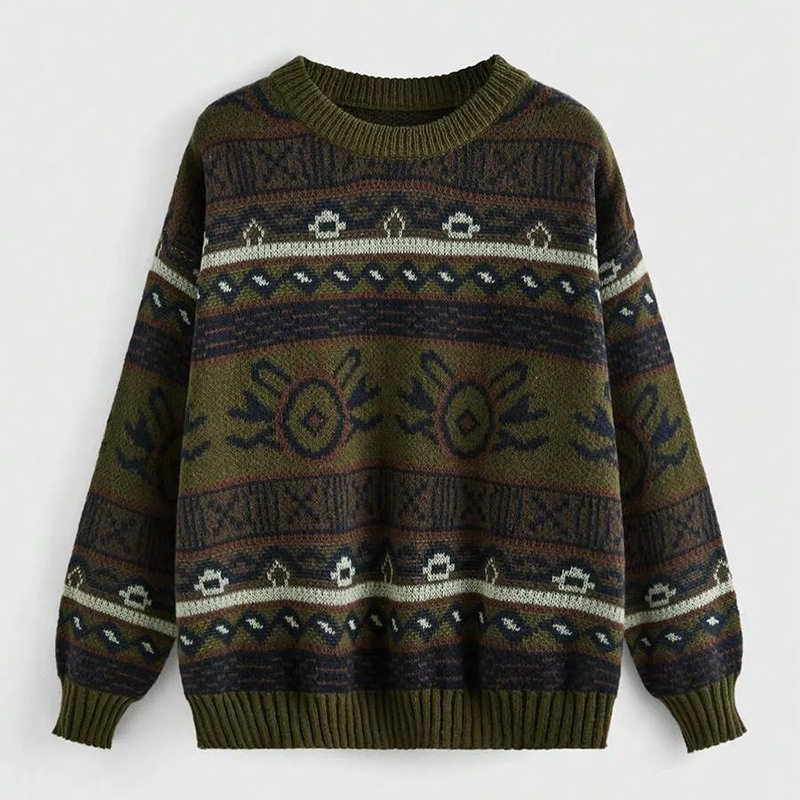 This women’s pullover sweater showcases a jacquard knit pattern with a contemporary color-block design. Crafted for both style and comfort, it features a classic round neckline and long sleeves. The fabric blend offers a soft handfeel and durability suitable for everyday wear. Ideal for layering or standalone use in cooler weather, this sweater combines modern aesthetics with cozy functionality.