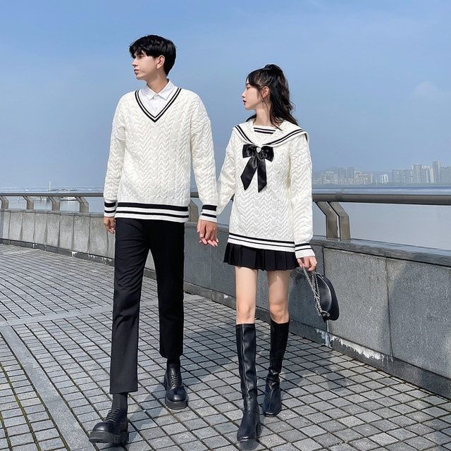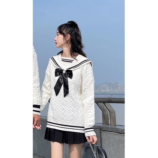 Be the first to review “New Japanese-style Color-blocked Round-neck Thick Fairy Sweater In White” Cancel reply
