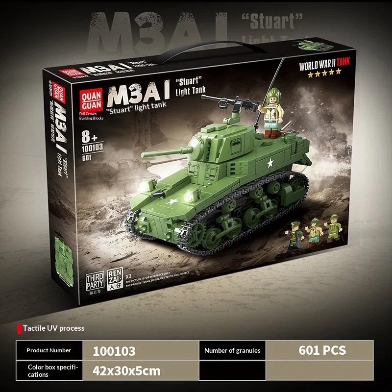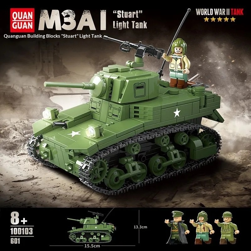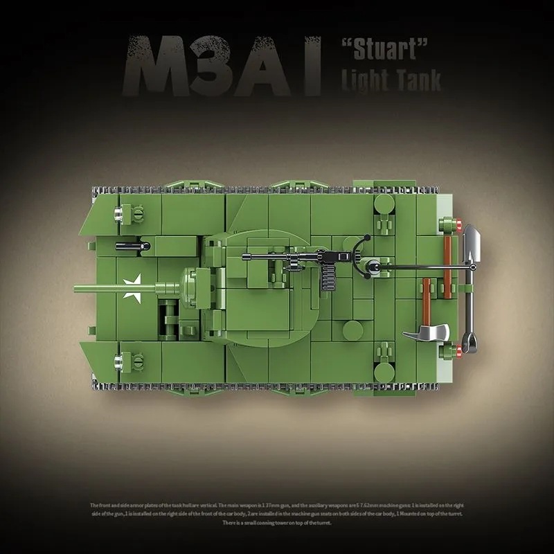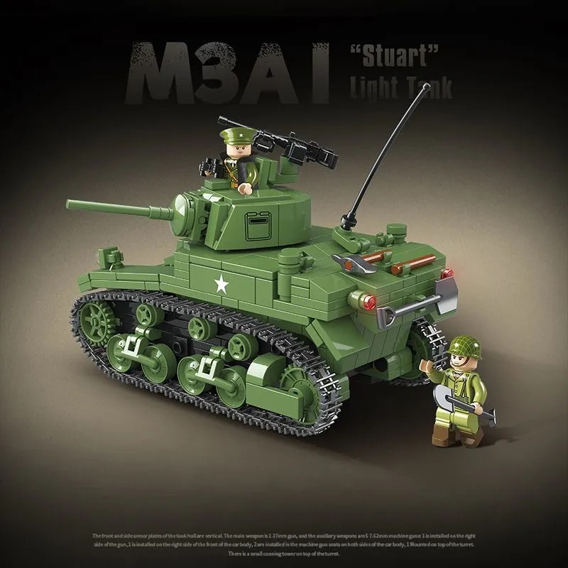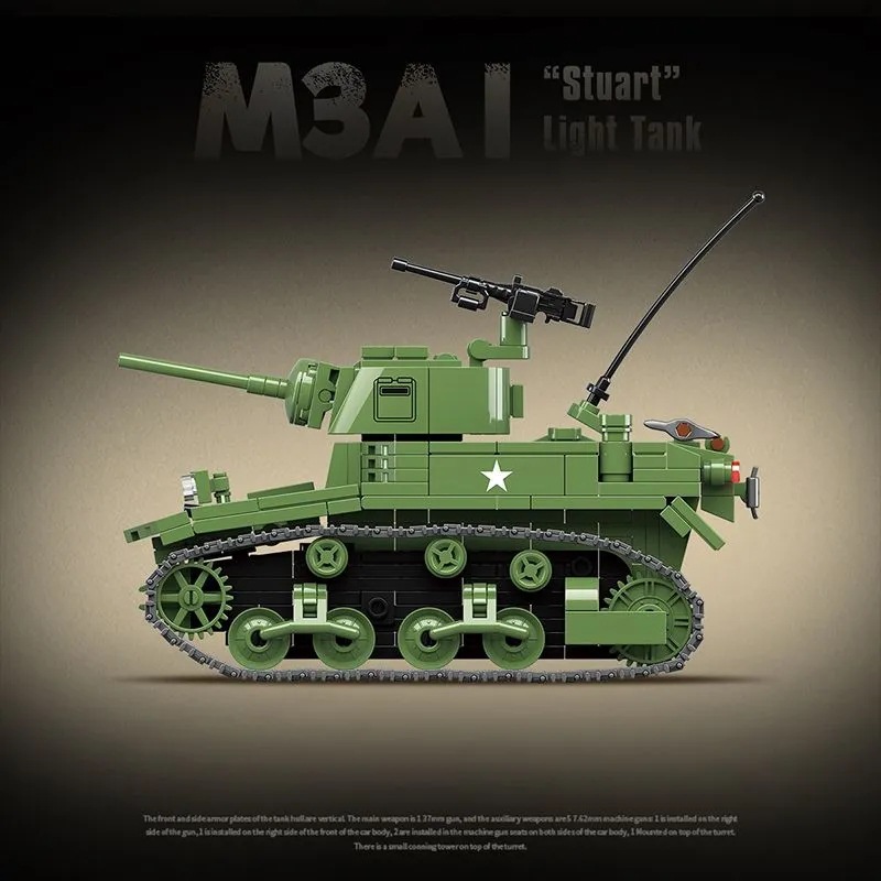 Assemble the New Stuart Light Tank toy building blocks for a detailed military model. Perfect for collectors and kids interested in military vehicles.