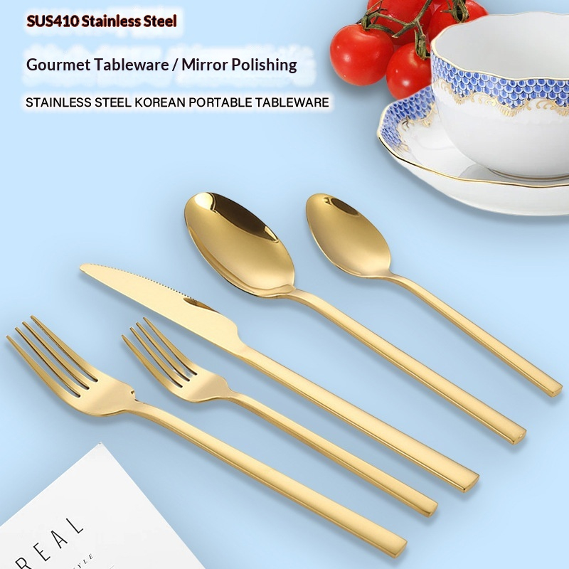 This premium cutlery set features a robust design made from thick stainless steel, comprising a knife, fork, and spoon. Each piece offers enhanced durability and a comfortable grip, suitable for both daily use and special occasions. The stainless steel construction ensures resistance to corrosion and easy maintenance, providing a long-lasting, polished finish. Ideal for elevating dining experiences, this set blends functionality with a modern aesthetic.